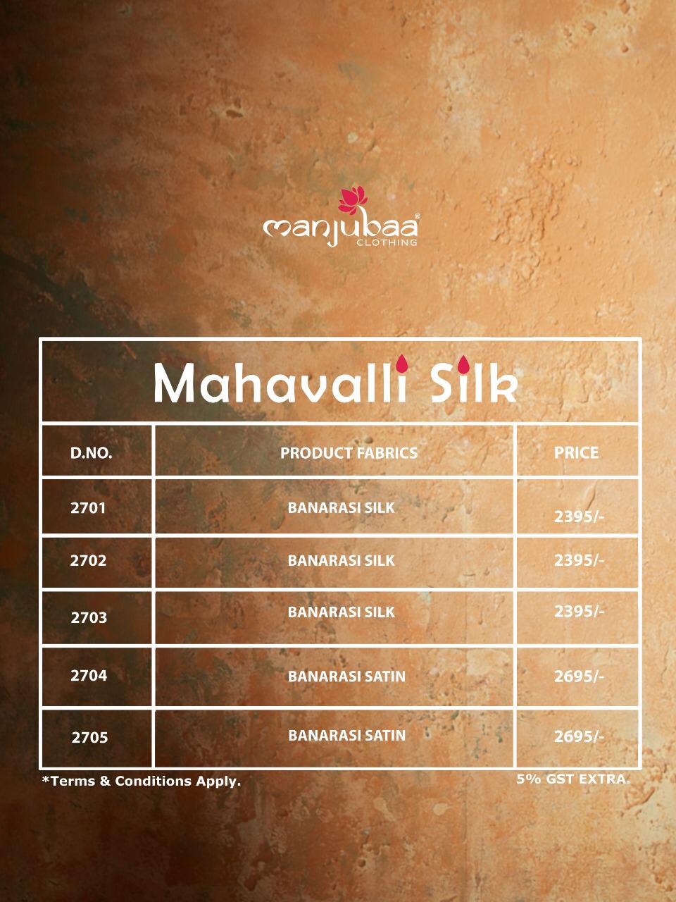 *Launching New Catalog,* *Mahavalli Silk?* by Manjuba Series - 2701 to 2705. Set & loose & Singel . Single extra 100 GST 5 Percent Extra. Delivery- Today *Dispatching Starts From Today* |