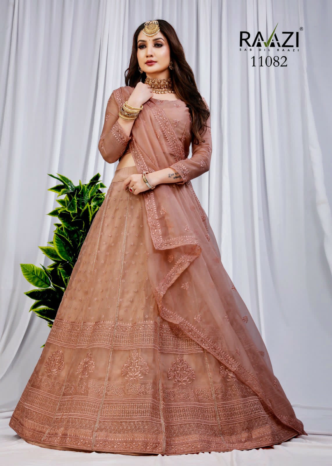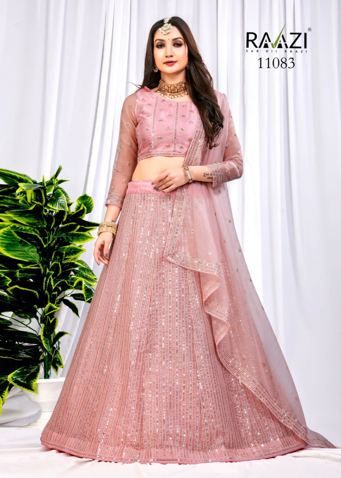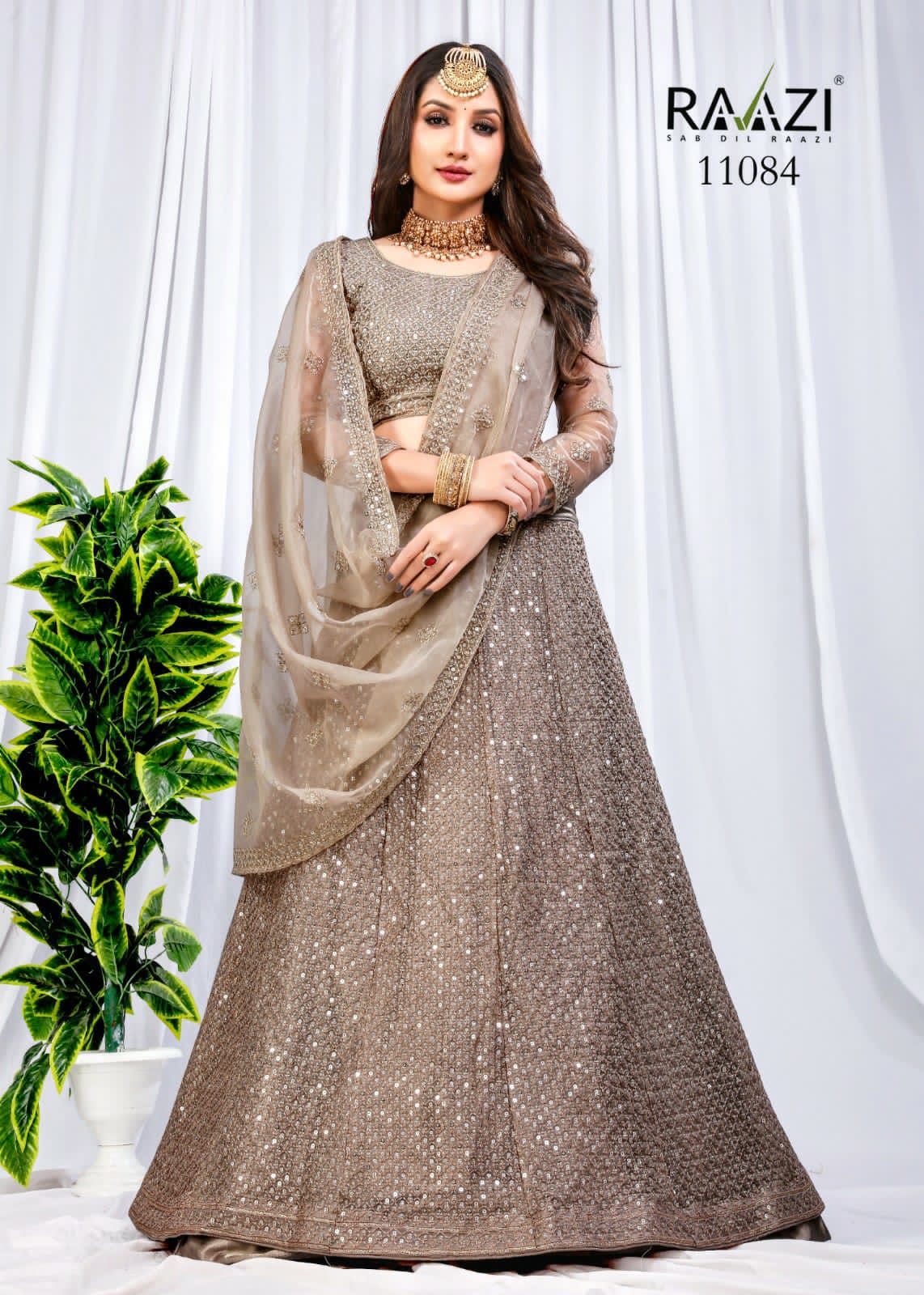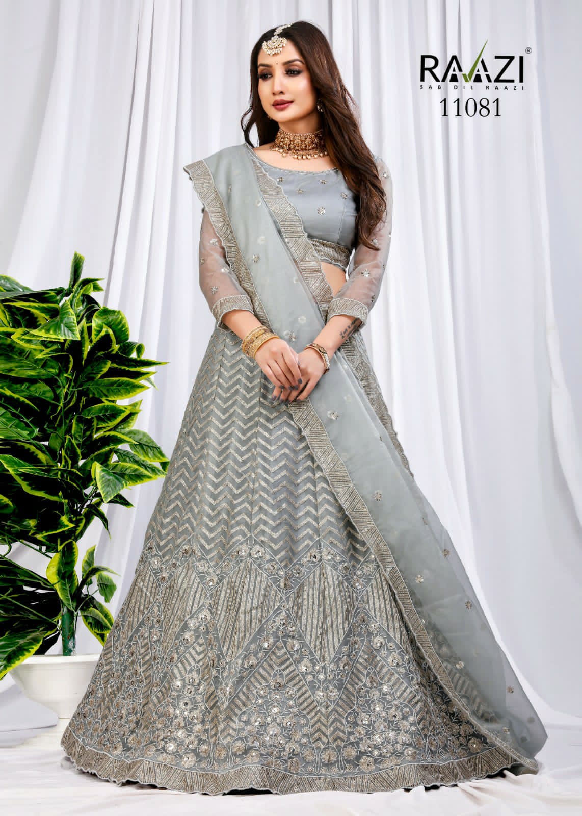 *RAMA FASHIONS* *DETAILS?RAAZI- **MAHAVESH** *BLOUSE*?Butterfly Net Embroidered *DUPPATTA*?Butterfly Net Fabric with embroidery four side lace *LEHANGA*?Butterfly Net SEQUENCE Embroidery with Inner heavy satin *CUT*-11.50 MTR RATE 2890.00 *GST 12%* |