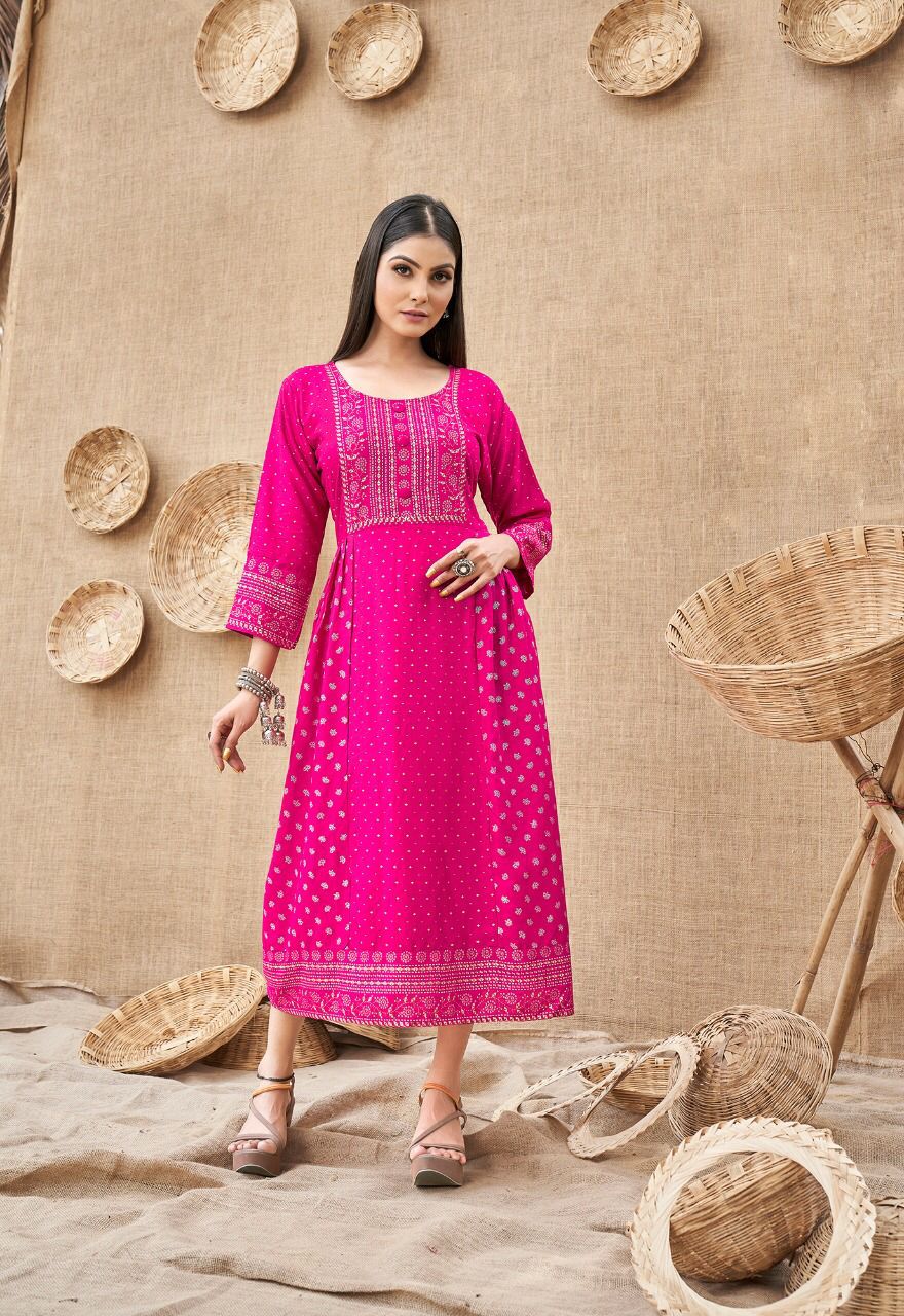 *KANAK NXÂ??* Dear Sir/Madam Presenting Exclusive Designer Kurti *CETALOGUE NAME* *MEHAK* Design No. 3001 To 3005 (5 pcs) ? *FABRICS* ? TOP:- *HEAVY RAYON * *WORK :- RAYON FOIL* *ONE PIECES CONCEPT* *Size* - *M (38)/L (40)/XL (42)/-XXL (44)/ 3XL(46)* Lenght - *45 PLUS TOP +*" Rate - *? 521/- ? 5%* Set to set Dispatch : NEXT WEEK Hurry up Book Your Order Now ?Thanks For Your Kind Support.? *Regards* *KANAK NXÂ??* Surat |