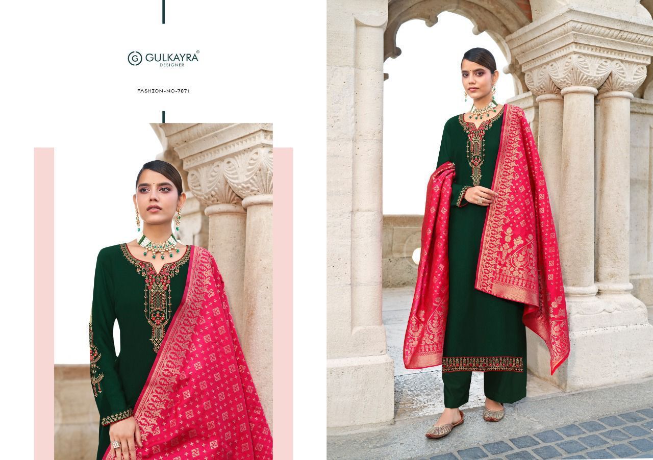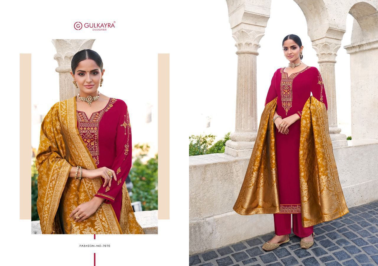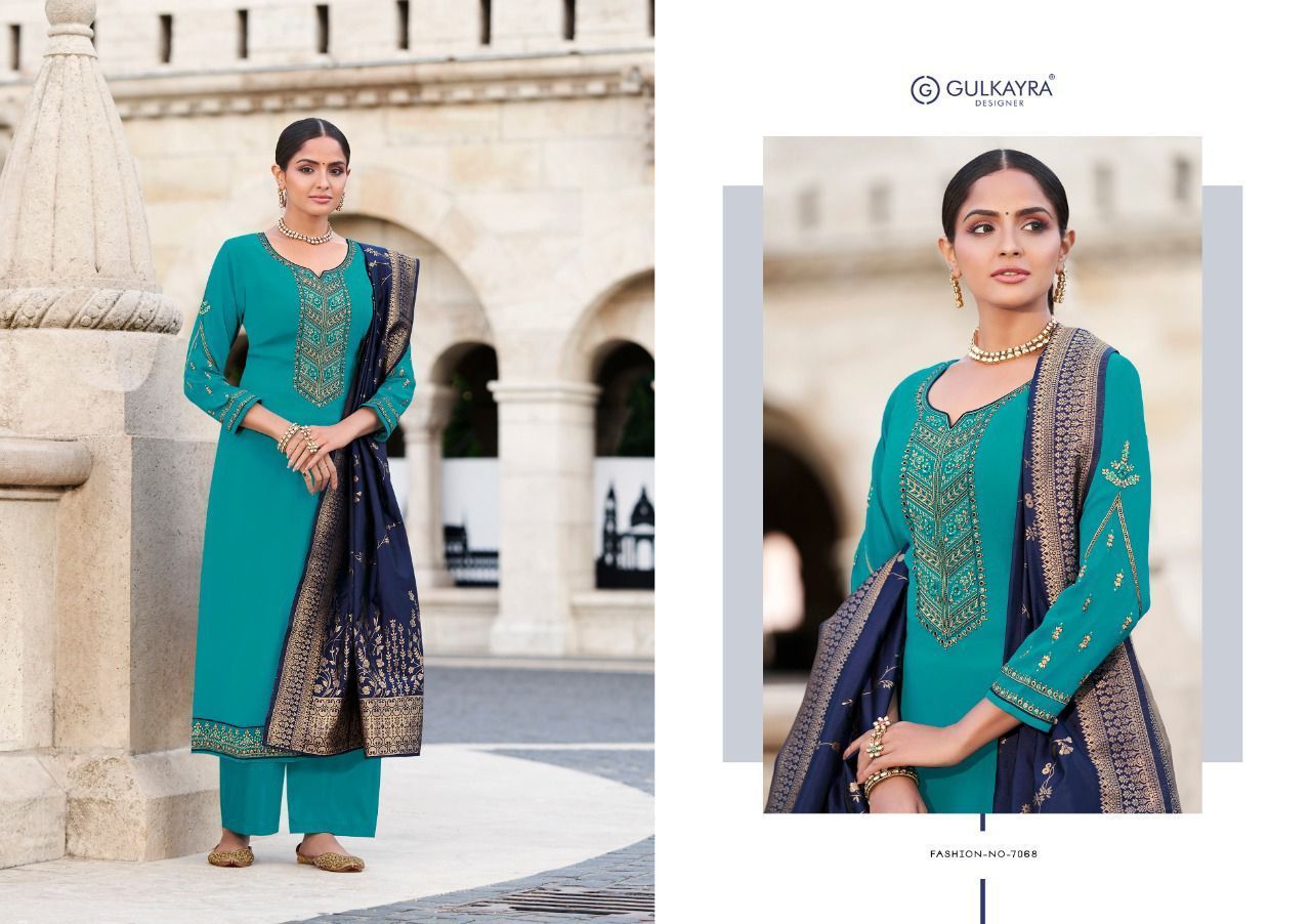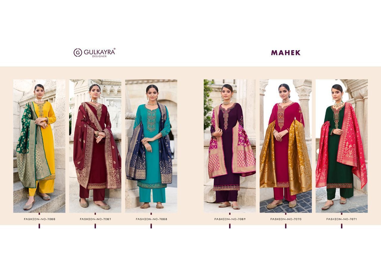 Buy Online Mahek Series 7066 To 7071 By Gulkayra Designer Single And Set Stockiest And Supplier From Surat 6 Pcs of Full Catalogue at Wholesale Price. Looking for Mahek Series 7066 To 7071 By Gulkayra Designer Single And Set Stockiest And Supplier From Surat Full Catalouge at Best Price? Buy Now Mahek Series 7066 To 7071 By Gulkayra Designer Single And Set Stockiest And Supplier From Surat at Wholesale Rate of Rs 7050 with Total 6 Pcs from authroized dealer and supplier of Brand. Cost of Each piece is just only Rs 1175 which is very low and affordable price to resale the product in your retail store ,This is Surat based Wholesale Supplier & Dealer of Brand. Click on Brand name to Know more about Brand's products.Call or Whatsapp on 9898838984 for booking or enquiry