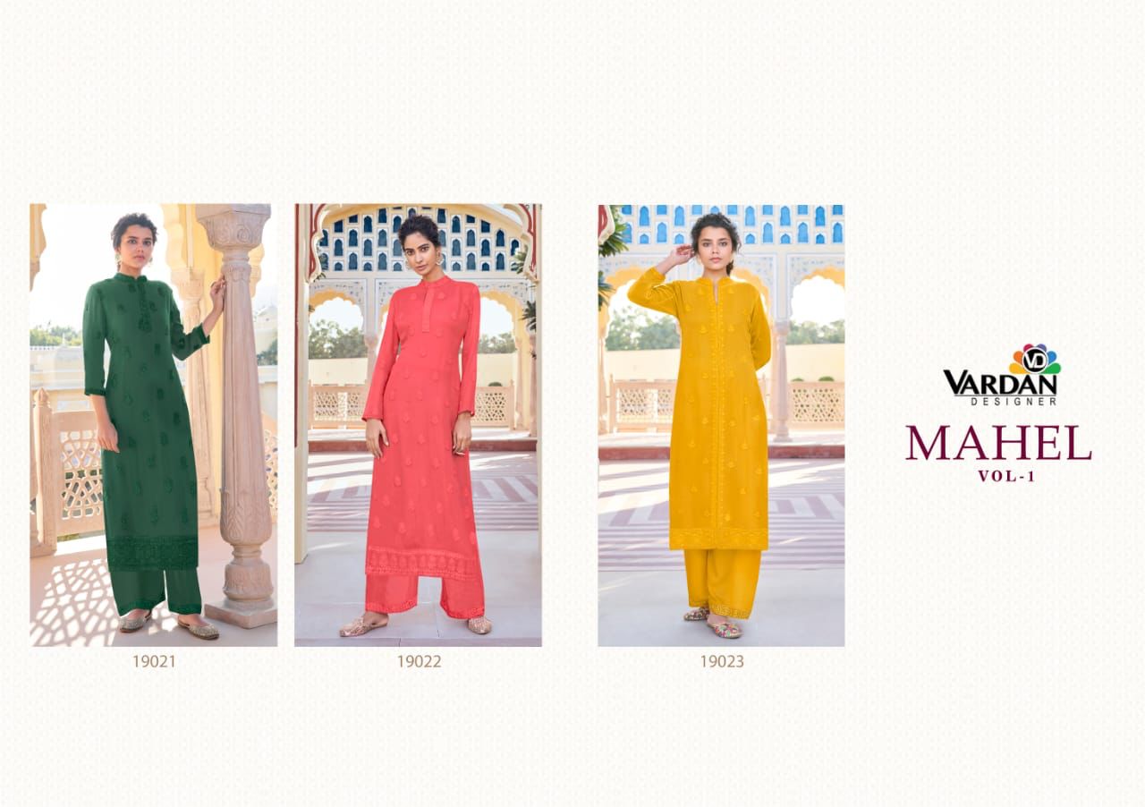 Buy Online Mahel Vardan Kurti Pant Georgette Collection 3 Pcs of Full Catalogue at Wholesale Price. Looking for Mahel Vardan Kurti Pant Georgette Collection Full Catalouge at Best Price? Buy Now Mahel Vardan Kurti Pant Georgette Collection at Wholesale Rate of Rs 2385 with Total 3 Pcs from authroized dealer and supplier of VARDAN DESIGNER Brand. Cost of Each piece is just only Rs 795 which is very low and affordable price to resale the product in your retail store ,This is Surat based Wholesale Supplier & Dealer of VARDAN DESIGNER Brand. Click on Brand name to Know more about VARDAN DESIGNER Brand's products.Call or Whatsapp on 9898838984 for booking or enquiry