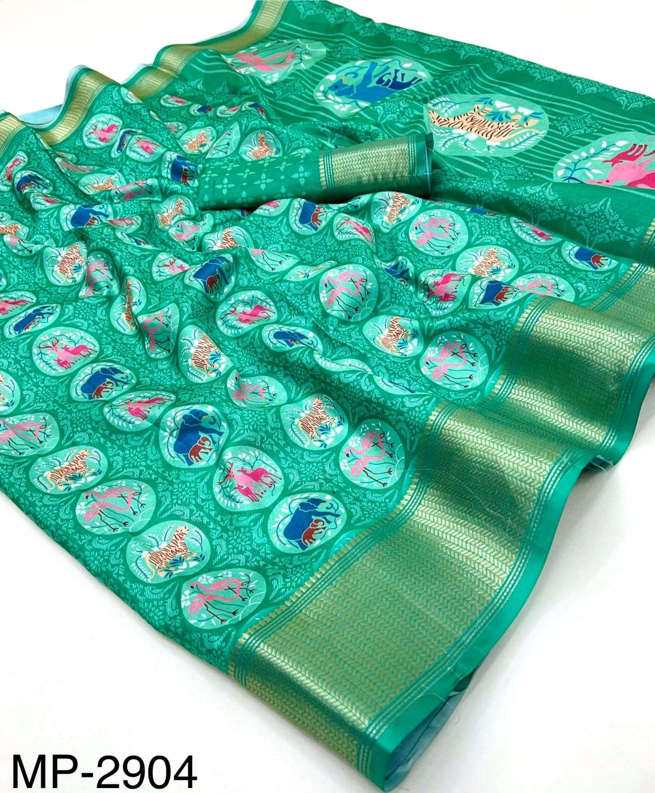 ➡️Catalog - *Mahi Pattu* ➡️Fabric - *Soft Dola silk Trending Jungle Digital print* ➡️Rate - *495/-*