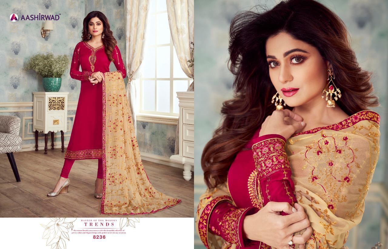 Buy Online Mahira 2 By Aashirwad Series 8236 To 8241 Designer Party Wear Suits Wholesale Supplier Gujarat 6 Pcs of Full Catalogue at Wholesale Price. Looking for Mahira 2 By Aashirwad Series 8236 To 8241 Designer Party Wear Suits Wholesale Supplier Gujarat Full Catalouge at Best Price? Buy Now Mahira 2 By Aashirwad Series 8236 To 8241 Designer Party Wear Suits Wholesale Supplier Gujarat at Wholesale Rate of Rs 11370 with Total 6 Pcs from authroized dealer and supplier of AASHIRWAD Brand. Cost of Each piece is just only Rs 1895 which is very low and affordable price to resale the product in your retail store ,This is Surat based Wholesale Supplier & Dealer of AASHIRWAD Brand. Click on Brand name to Know more about AASHIRWAD Brand's products.Call or Whatsapp on 9898838984 for booking or enquiry
