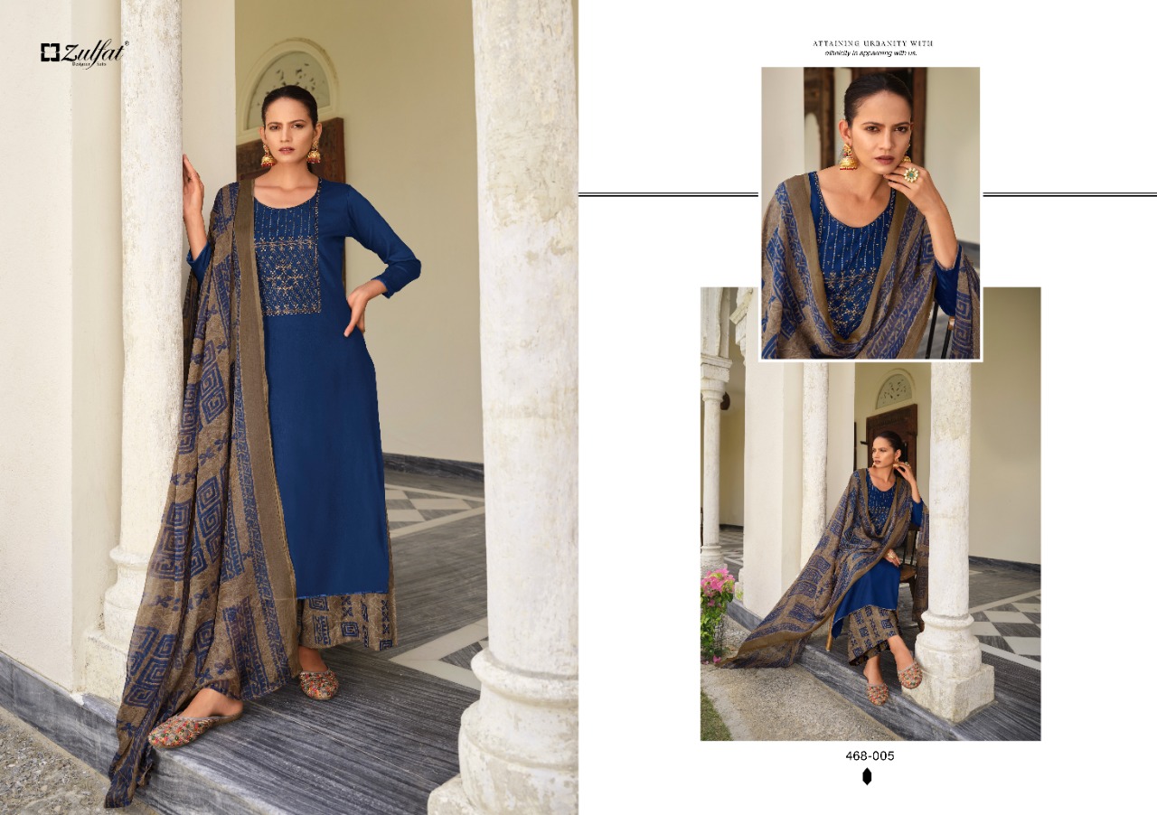 Buy Online Mahonia Vol 3 By Zulfat Designer Suits Pure Cotton Suits Manufacturer Surat 10 Pcs of Full Catalogue at Wholesale Price. Looking for Mahonia Vol 3 By Zulfat Designer Suits Pure Cotton Suits Manufacturer Surat Full Catalouge at Best Price? Buy Now Mahonia Vol 3 By Zulfat Designer Suits Pure Cotton Suits Manufacturer Surat at Wholesale Rate of Rs 4850 with Total 10 Pcs from authroized dealer and supplier of Brand. Cost of Each piece is just only Rs 485 which is very low and affordable price to resale the product in your retail store ,This is Surat based Wholesale Supplier & Dealer of Brand. Click on Brand name to Know more about Brand's products.Call or Whatsapp on 9898838984 for booking or enquiry