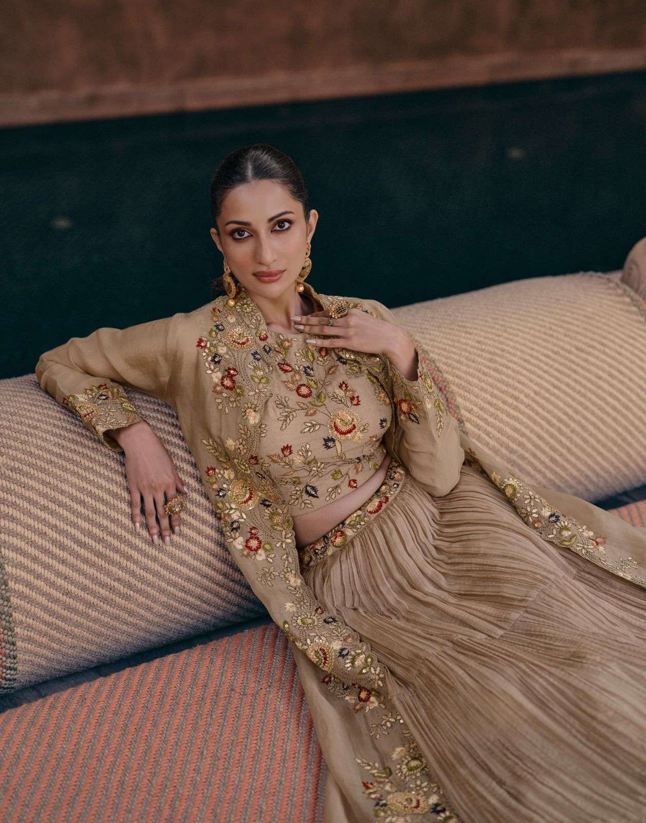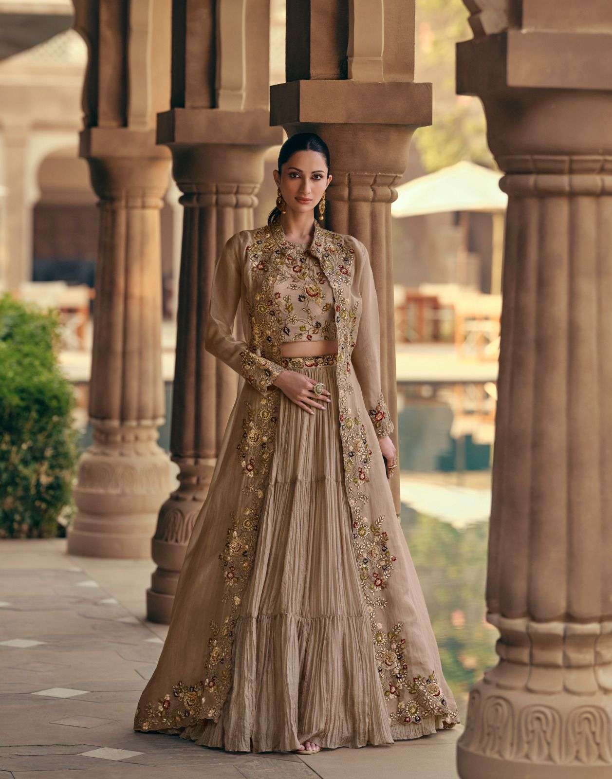 FABRIC - REAL CHINON SILK / REAL GEROGETTE ( FRONT AND BACK EMBROIDERED WITH CANCAN )