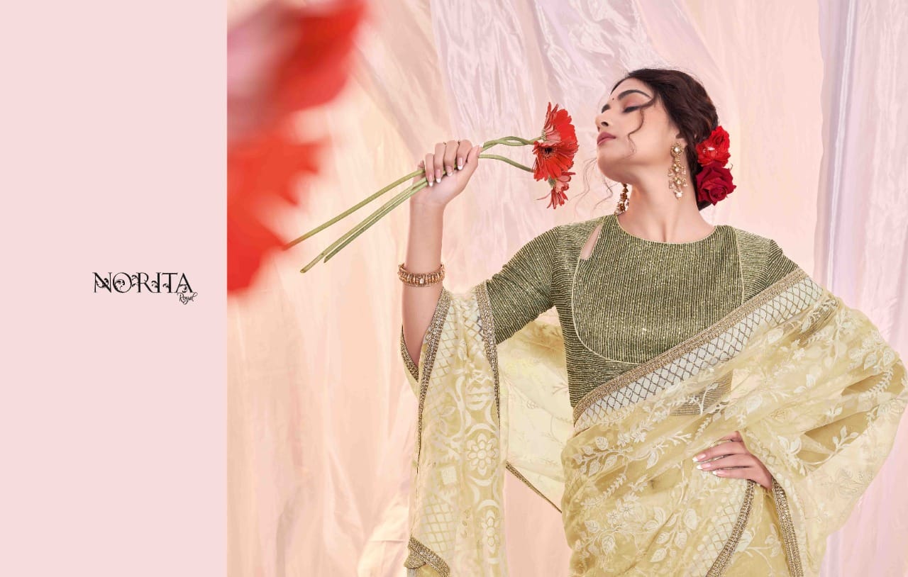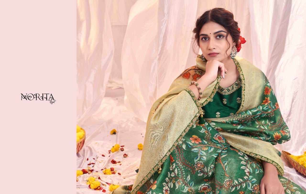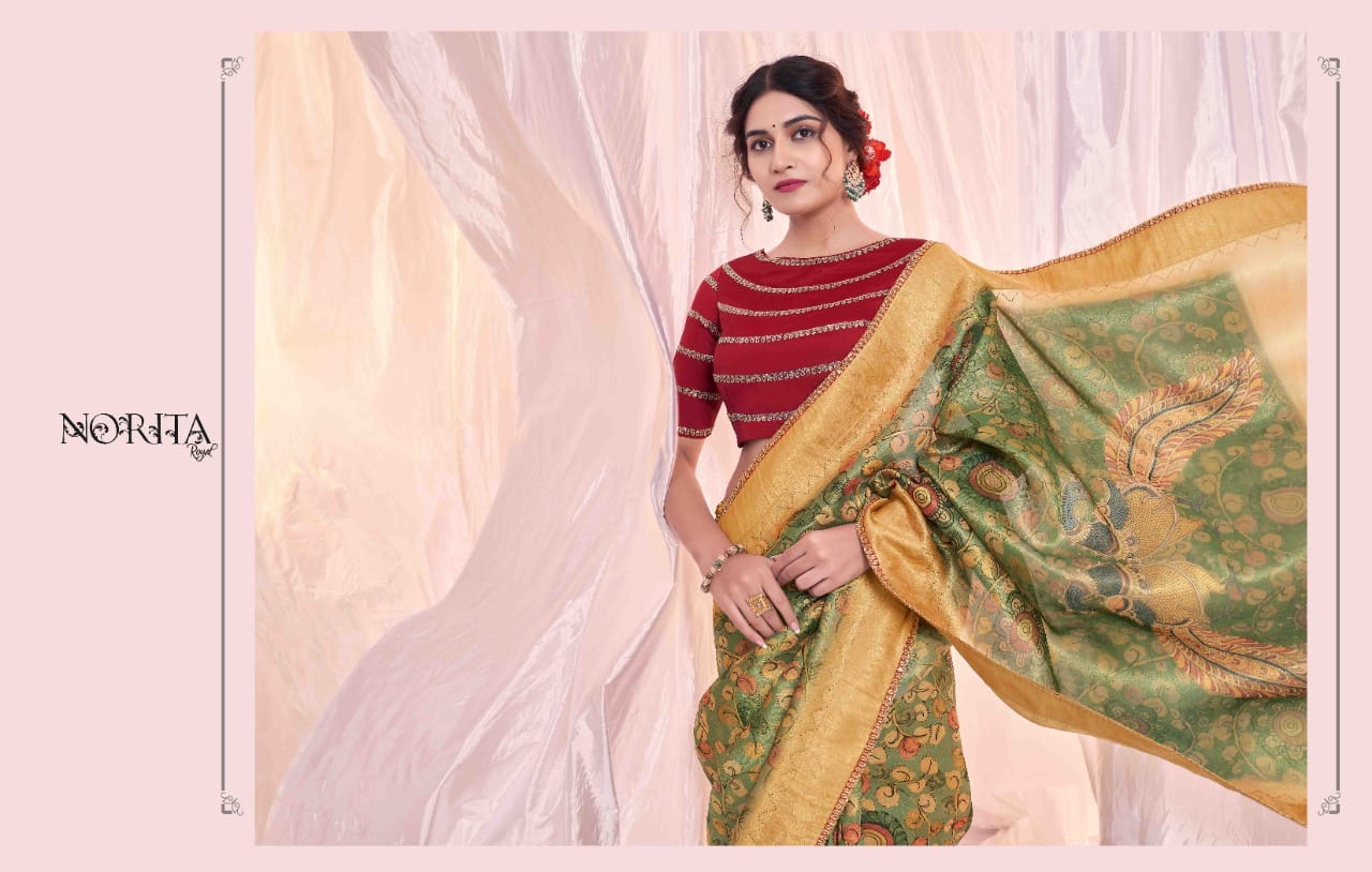 Presenting our magnificent , new collection - *Rajastha* , which means Royally Perfect , under our brand' _*Norita*_. A collection of beautiful, rich, culturally exquisite and phenomenal silk sarees weaved and digitally printed to perfection for an evergreen appeal. *WHAT CAN YOU FIND IN THIS COLLECTION?* 13 beautiful traditionally appealing silk saree meant to make your festivities and weddings a step above the rest. With elements like subtle digital prints inspired from rich Indian artforms like Kalamkari , ikat , Phulkari and paisleys to floral zari infused embroideries , each saree is an epitome of sheer elegance. Rajastha makes sure you get the best of Indian beauty in its glorious colors ranging from vivid yellows to dusty greys and best of fabrics like weaved silks and organza's to unique zari jacquards and much more. GST extra Ship extra Single available 100+single |