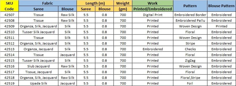 | Note | Stitching available on customer Requirment For Sarees , Salwar Kameez, Lehengha.(i.e M,L,XL,XXL). |