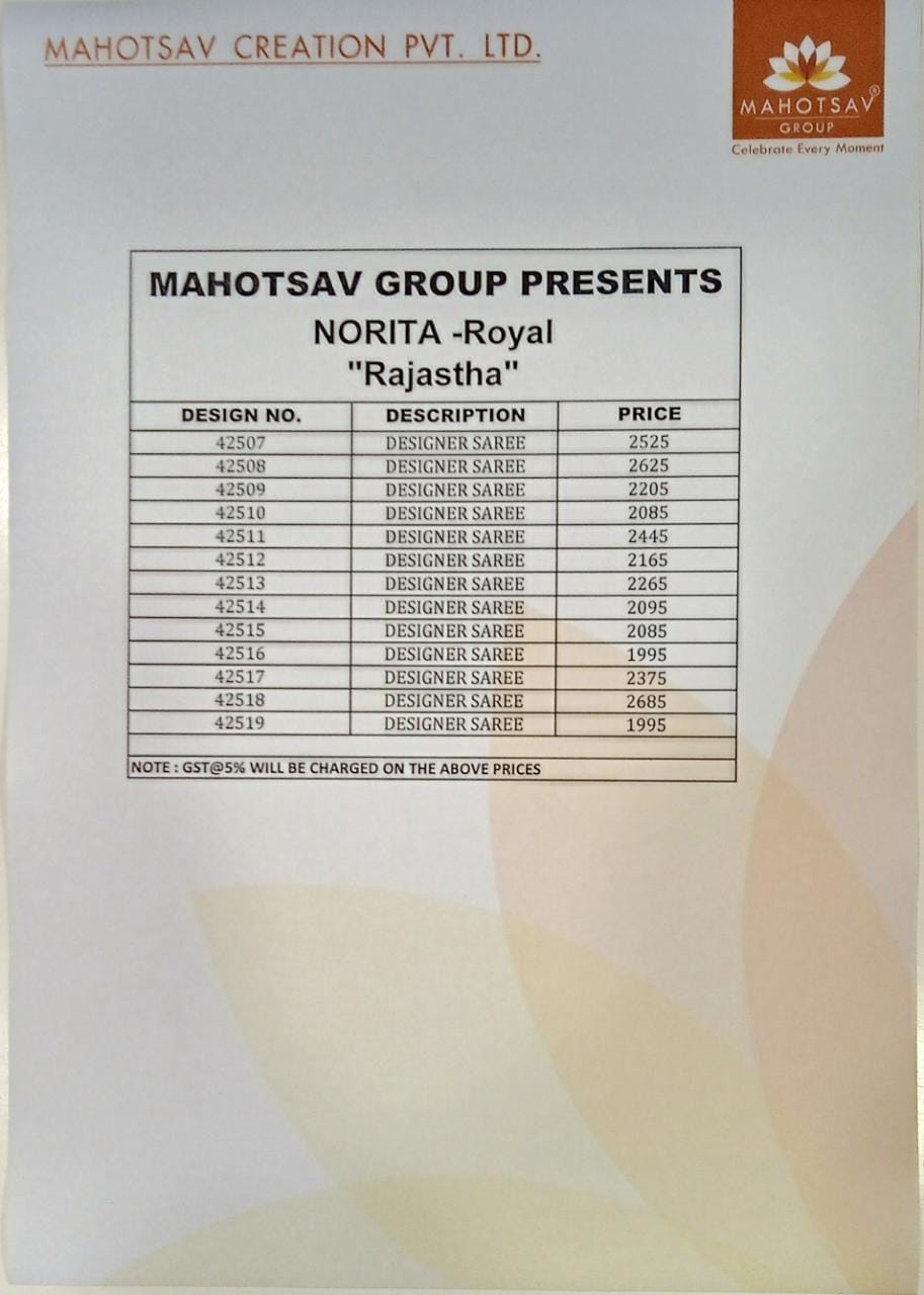 Mahotsav Group Present New Catalog Norita Royal Rajastha Series 42507 To 42519 Designer Silk Saree Single And Set Stockiest And Supplier From Surat