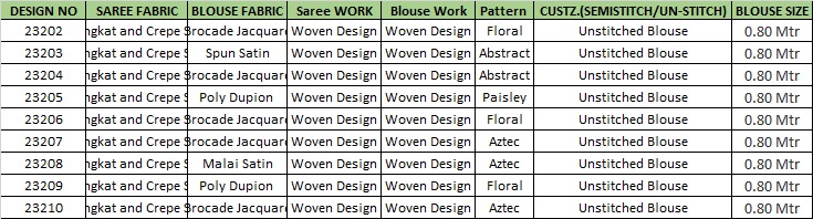 *BRAND NAME : MAHOTSAV* *CATALOG NAME : MOHMANTHAN 23200 SERIES SAACHI* *PRICE* : * *23202-2835/-* *23203-2795/-* *23204-2795/-* *23205-2795/-* *23206-2835/-* *23207-2825/-* *23208-2835/-* *23209-2825/-* *23210-2835/-* *+ 05%GST* *SAREE FABRIC : ATTACHED* *BLOUSE FABRIC : ATTACHED* *SINGLES & SET WISE AVAILABLE ?* *WORK : ATTACHED* *SHIPPING TIME : NEXT DAY* 100+single |