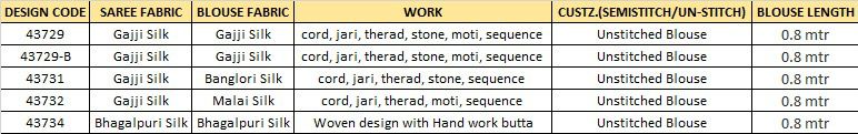 | Note | Stitching available on customer Requirment For Sarees , Salwar Kameez, Lehengha.(i.e M,L,XL,XXL). |