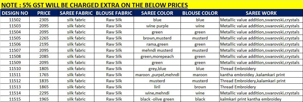 Brand - Mahotsav. Type - saree. Series - 11502 to 11515. Set & loose & simgel . Single extra 100 GST 5 Percent Extra. Delivery- 2 days |