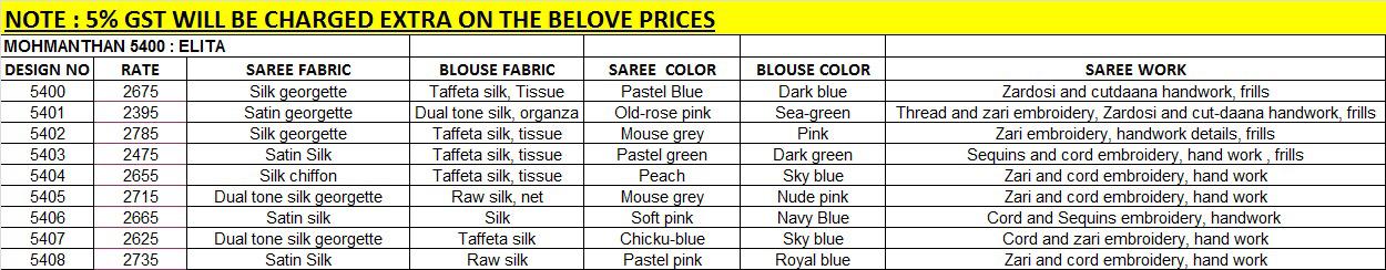 Brand - Mahotsav. Type - saree. Series -5400 to 5408. Set & Loose. Catlog name - Elita . GST 5 Percent Extra. Delivery 2 days |