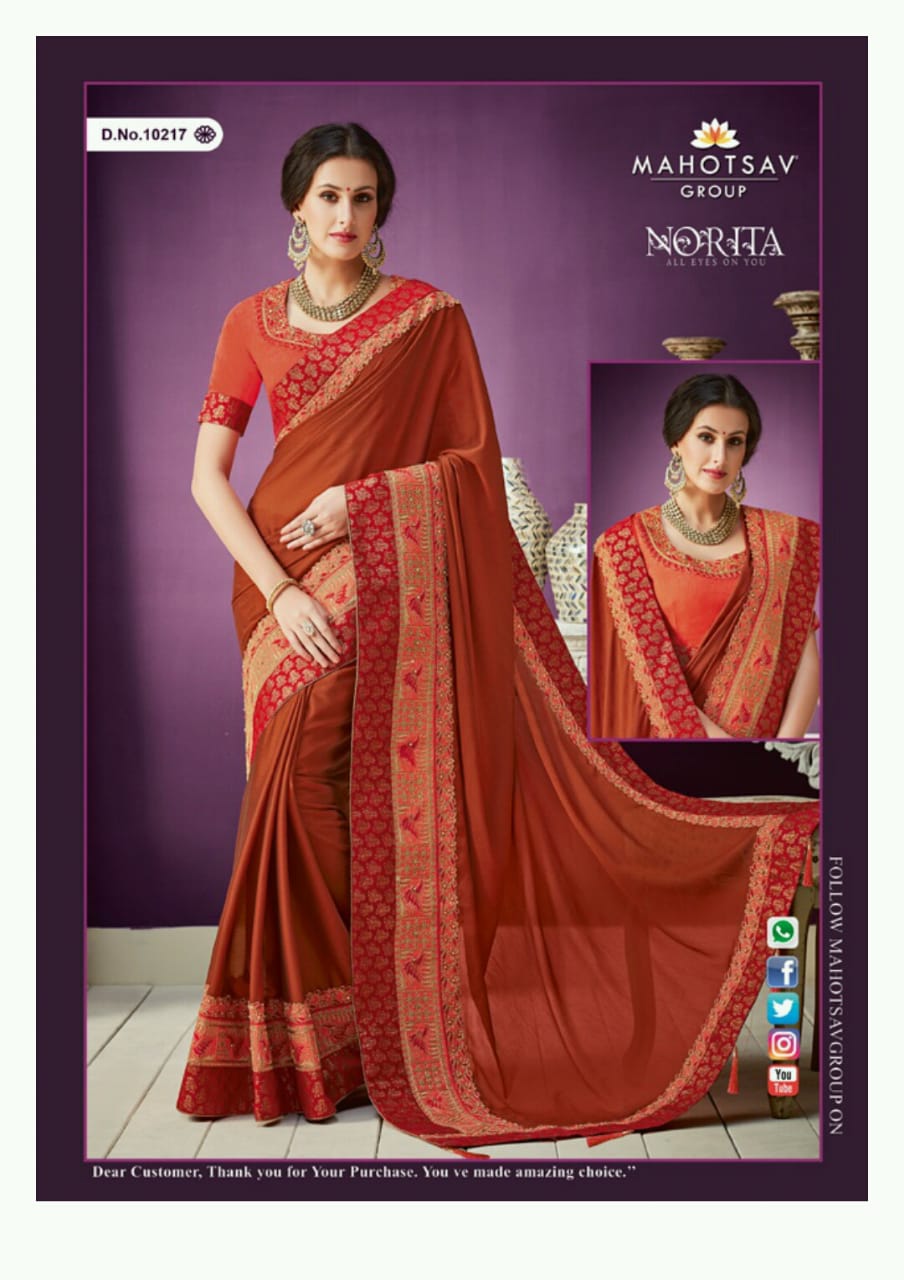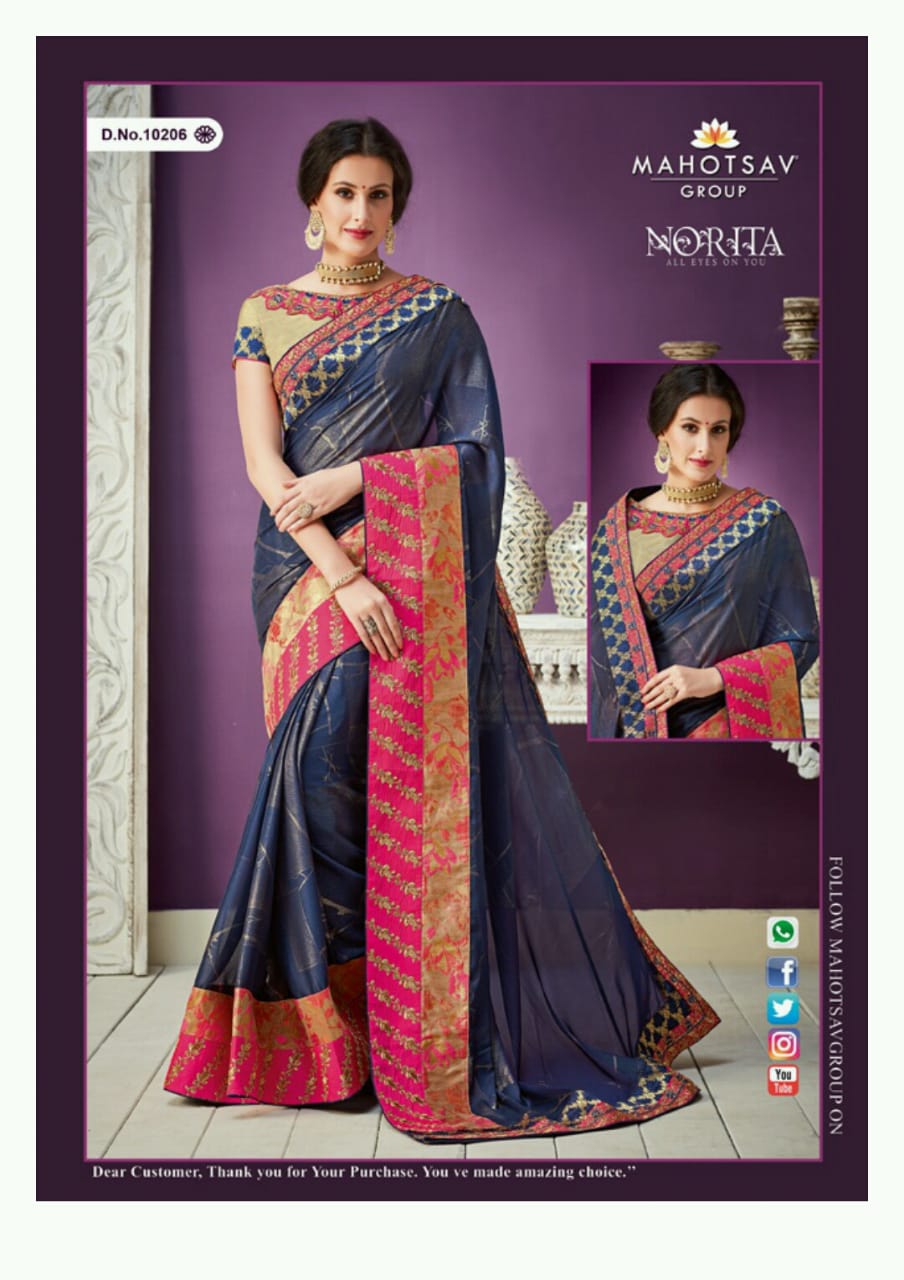 Mahotasav saree prasents Shahnoor Norita 5%gst extra Set to set Only Book now |