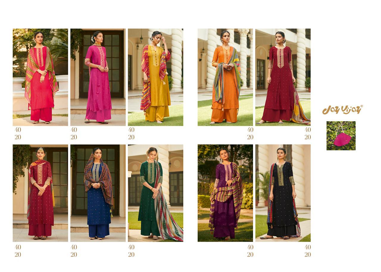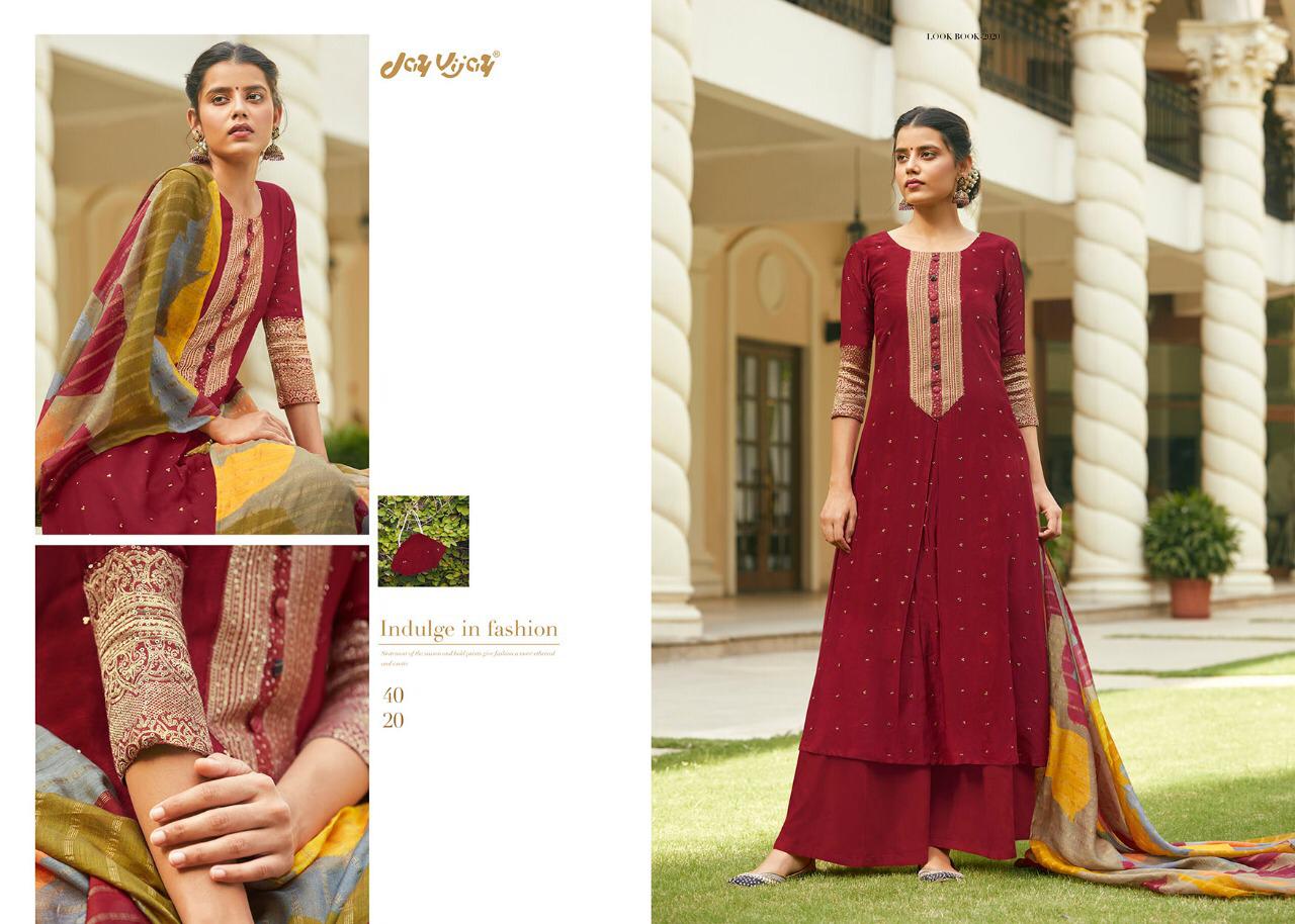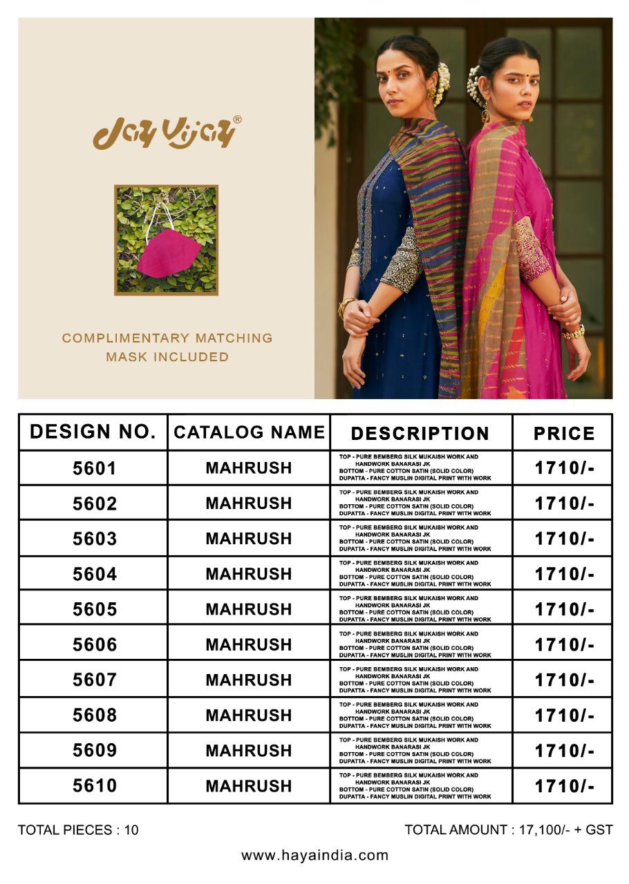 Buy Online Mahrush By Jay Vijay Dress Materials Wholesale Supplier Surat 10 Pcs of Full Catalogue at Wholesale Price. Looking for Mahrush By Jay Vijay Dress Materials Wholesale Supplier Surat Full Catalouge at Best Price? Buy Now Mahrush By Jay Vijay Dress Materials Wholesale Supplier Surat at Wholesale Rate of Rs 17100 with Total 10 Pcs from authroized dealer and supplier of JAY VIJAY Brand. Cost of Each piece is just only Rs 1710 which is very low and affordable price to resale the product in your retail store ,This is Surat based Wholesale Supplier & Dealer of JAY VIJAY Brand. Click on Brand name to Know more about JAY VIJAY Brand's products.Call or Whatsapp on 9898838984 for booking or enquiry