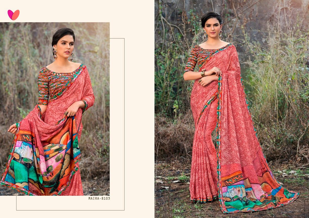 Maira By Mintorsi 8101 Series Fancy Rangoli Satin Georgette Printed Saree Collection Wholesale Dealer Surat