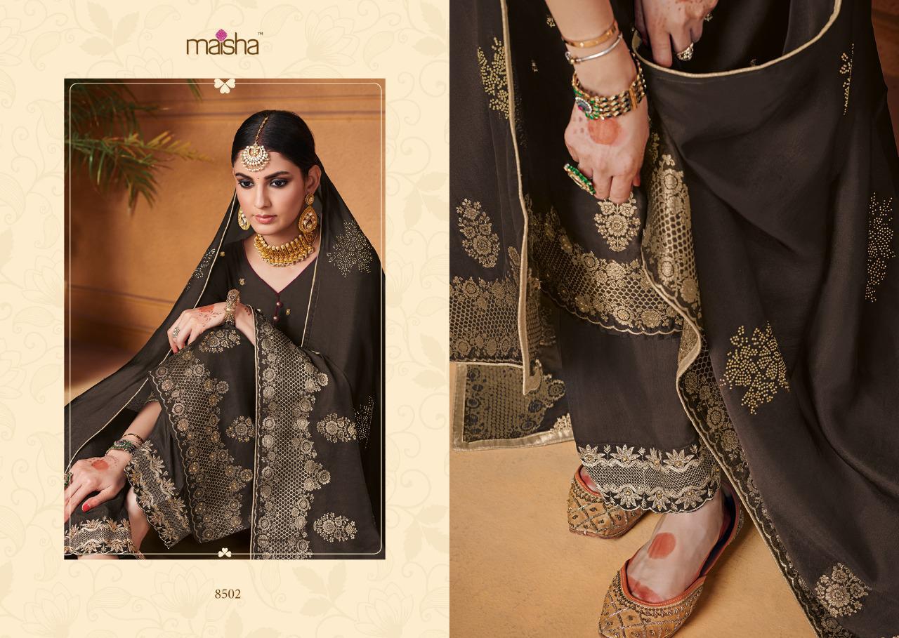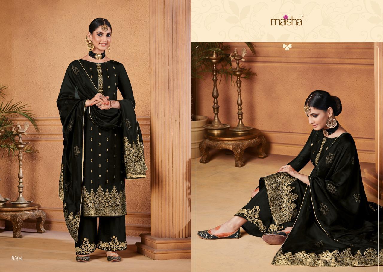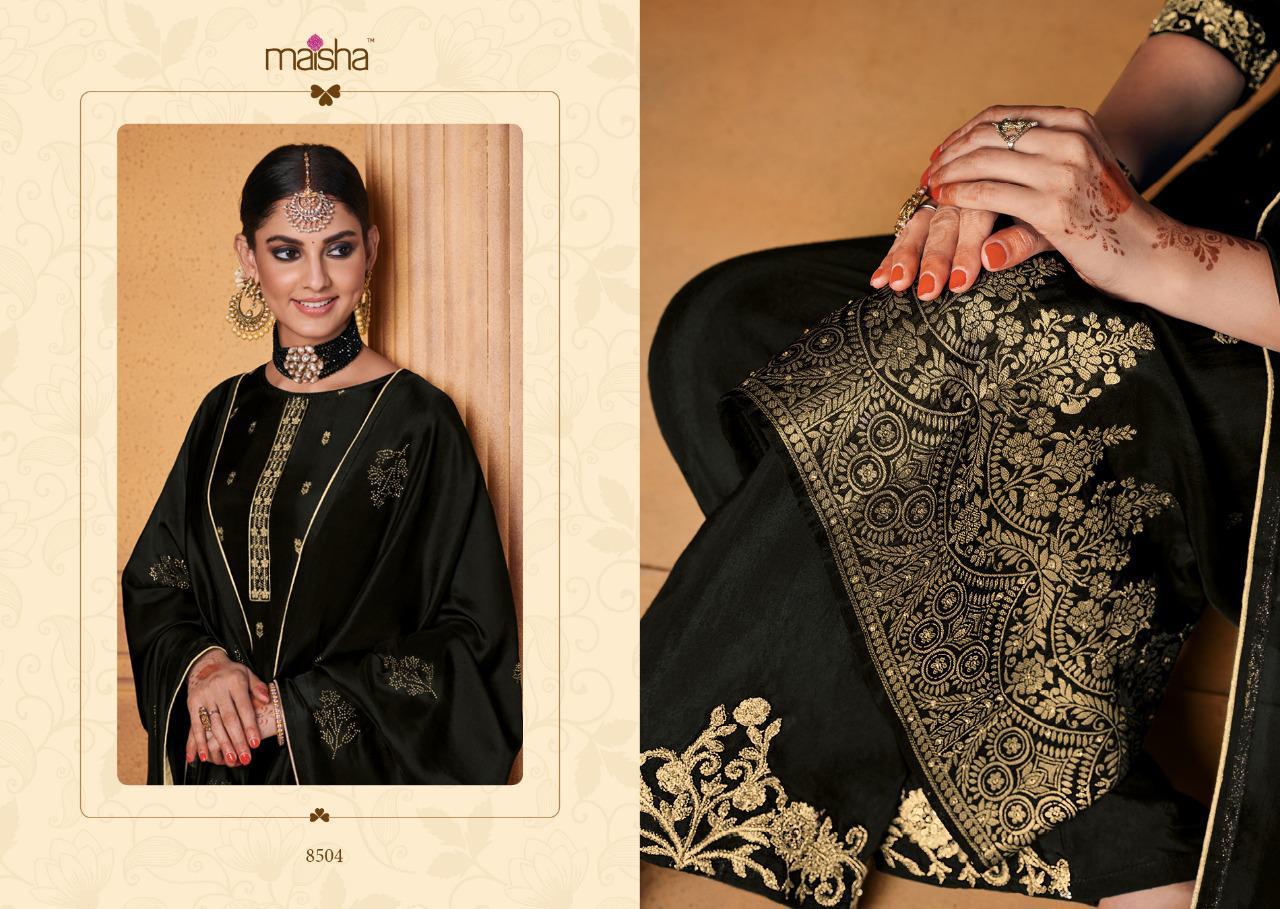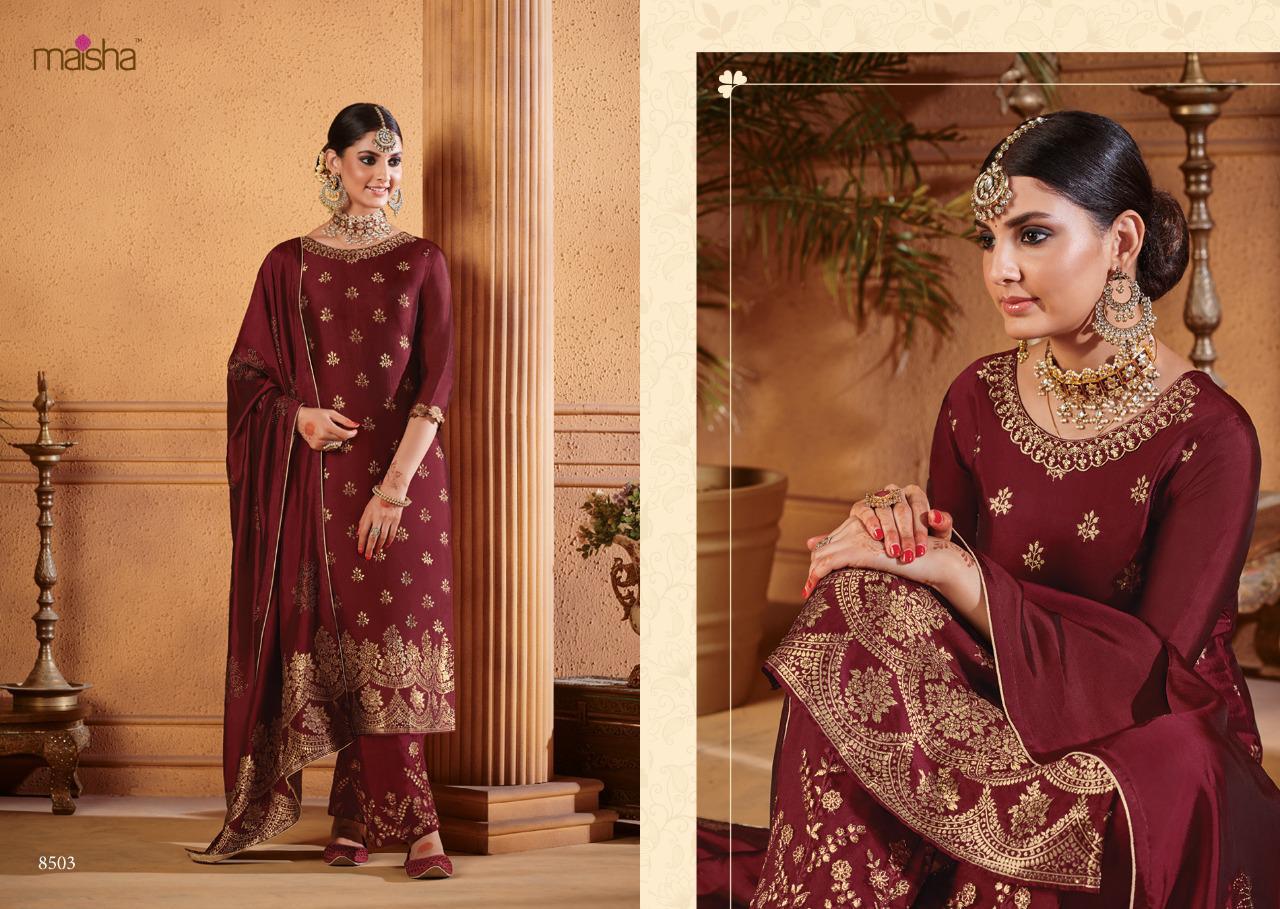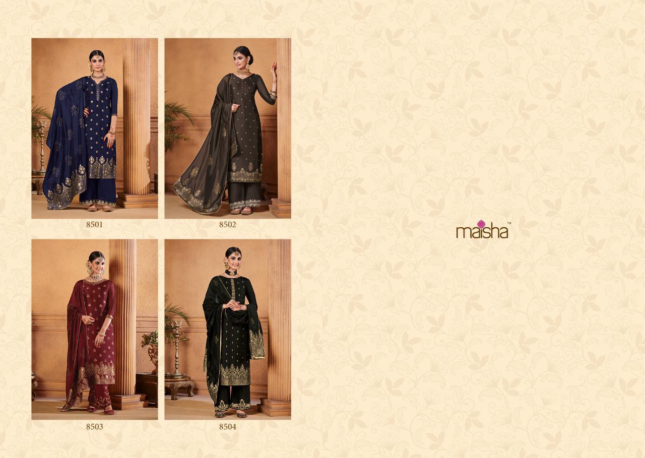 Buy Online Maisha Maskeen Hoor Series 8501 To 8504 Designer Party Wear Suits Set And Single Wholesale Supplier Surat 4 Pcs of Full Catalogue at Wholesale Price. Looking for Maisha Maskeen Hoor Series 8501 To 8504 Designer Party Wear Suits Set And Single Wholesale Supplier Surat Full Catalouge at Best Price? Buy Now Maisha Maskeen Hoor Series 8501 To 8504 Designer Party Wear Suits Set And Single Wholesale Supplier Surat at Wholesale Rate of Rs 9780 with Total 4 Pcs from authroized dealer and supplier of MAISHA Brand. Cost of Each piece is just only Rs 2445 which is very low and affordable price to resale the product in your retail store ,This is Surat based Wholesale Supplier & Dealer of MAISHA Brand. Click on Brand name to Know more about MAISHA Brand's products.Call or Whatsapp on 9898838984 for booking or enquiry