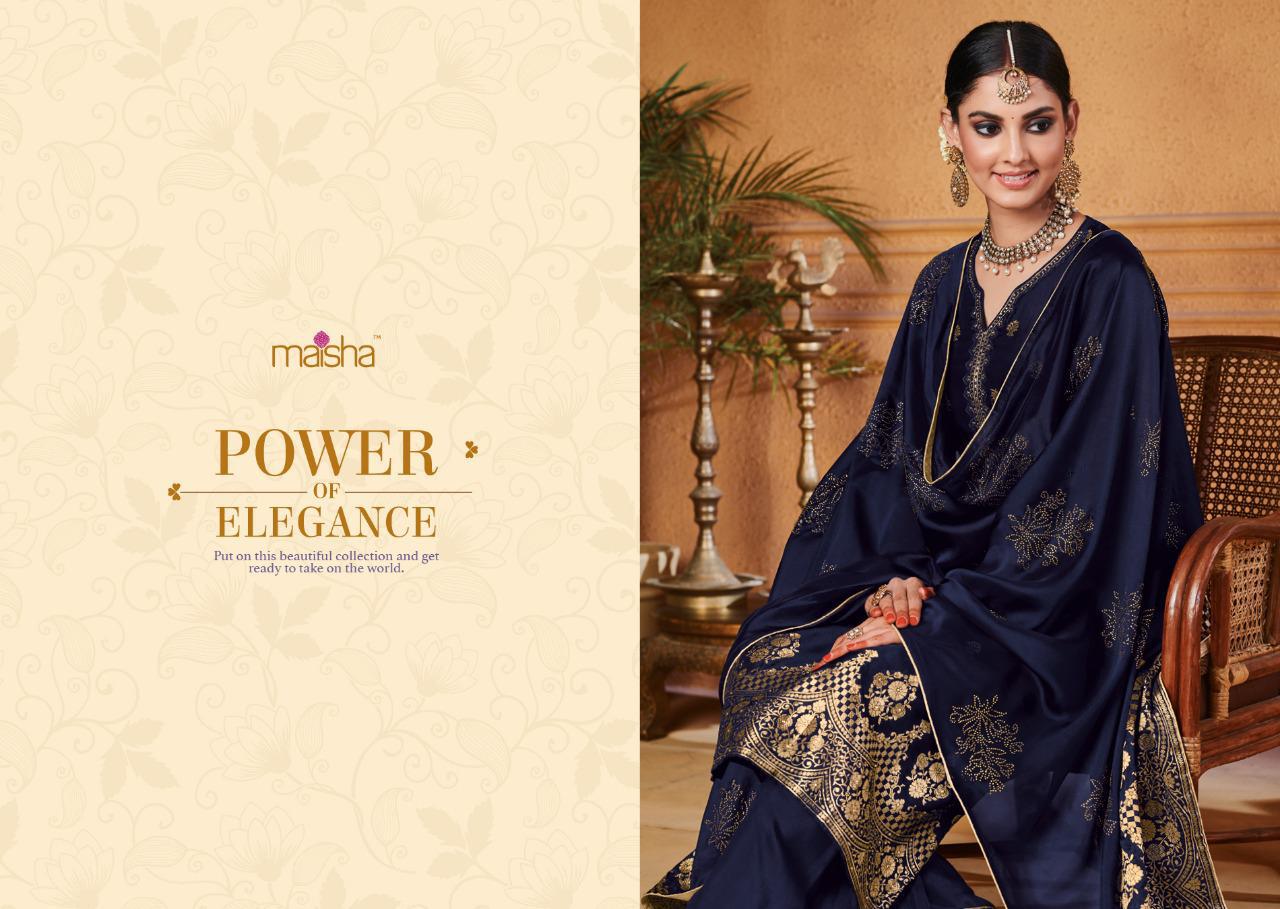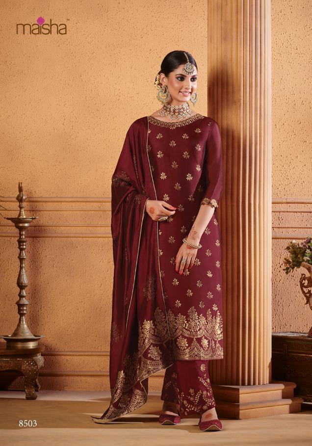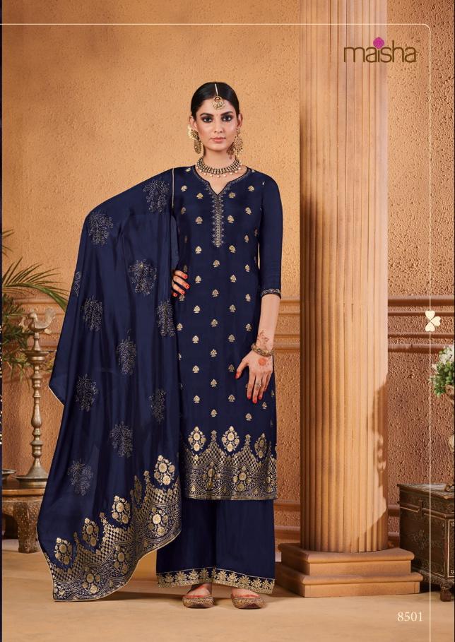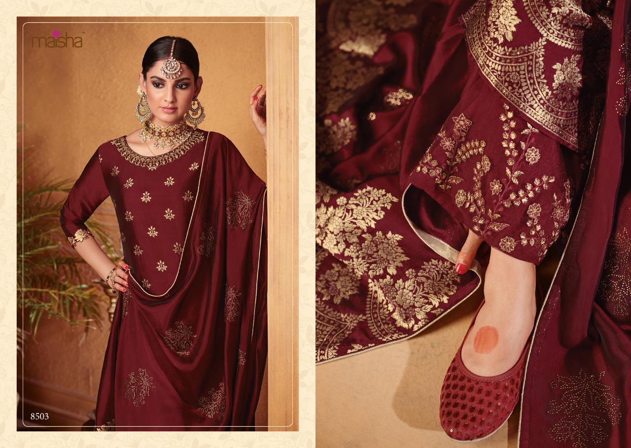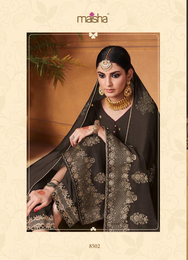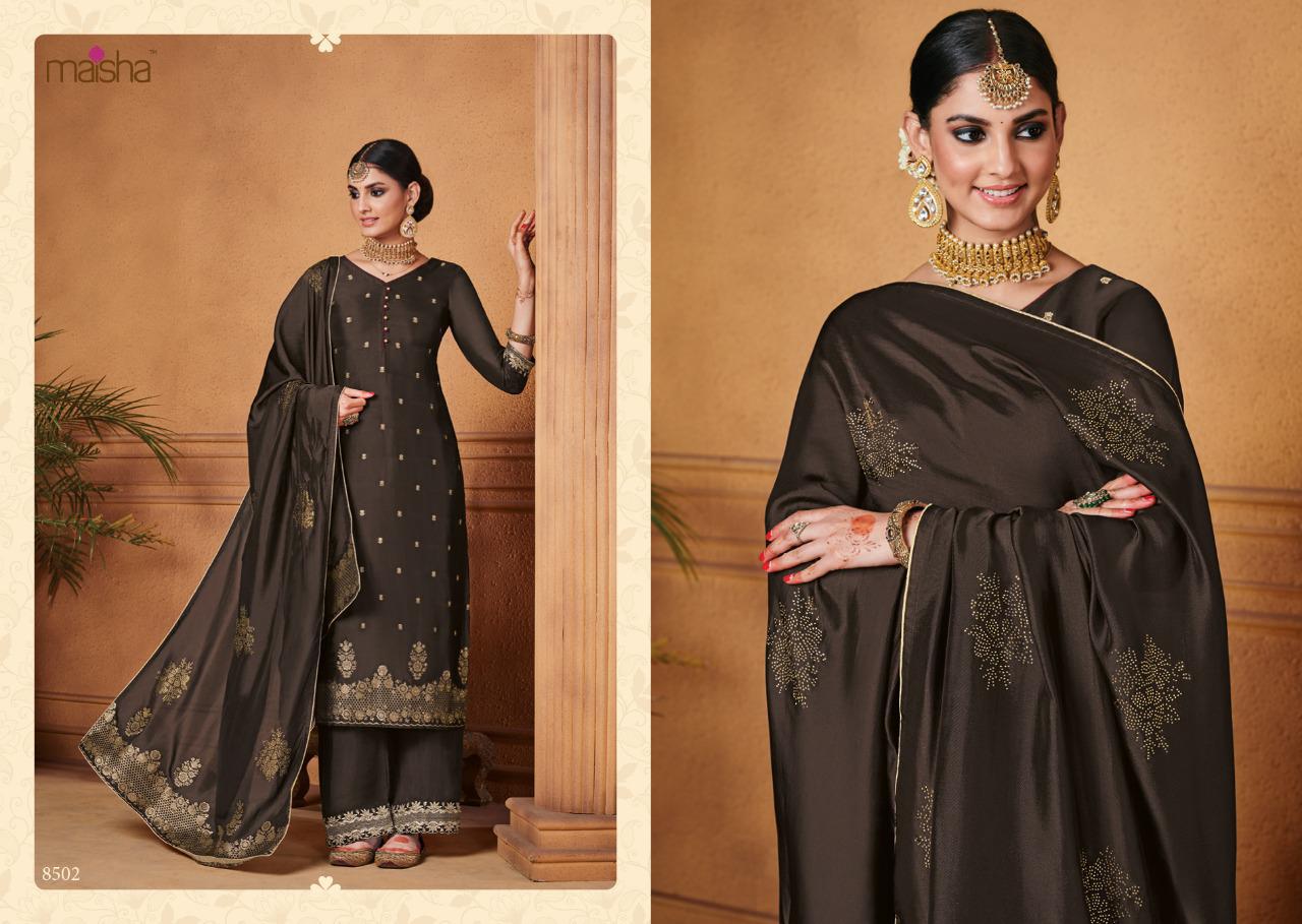 Buy Online Maisha Maskeen Hoor Series 8501 To 8504 Designer Party Wear Suits Set And Single Wholesale Supplier Surat 4 Pcs of Full Catalogue at Wholesale Price. Looking for Maisha Maskeen Hoor Series 8501 To 8504 Designer Party Wear Suits Set And Single Wholesale Supplier Surat Full Catalouge at Best Price? Buy Now Maisha Maskeen Hoor Series 8501 To 8504 Designer Party Wear Suits Set And Single Wholesale Supplier Surat at Wholesale Rate of Rs 9780 with Total 4 Pcs from authroized dealer and supplier of MAISHA Brand. Cost of Each piece is just only Rs 2445 which is very low and affordable price to resale the product in your retail store ,This is Surat based Wholesale Supplier & Dealer of MAISHA Brand. Click on Brand name to Know more about MAISHA Brand's products.Call or Whatsapp on 9898838984 for booking or enquiry