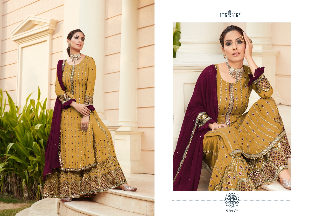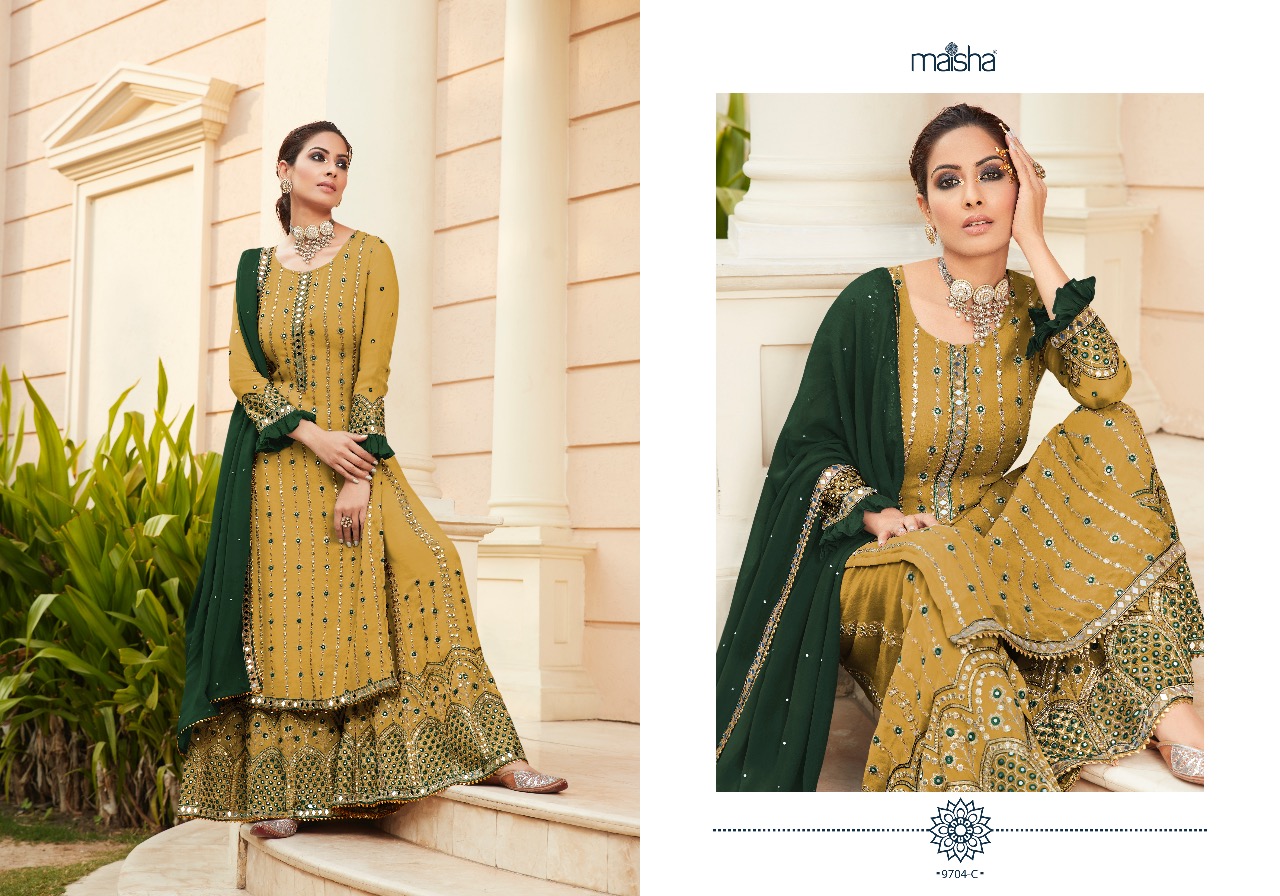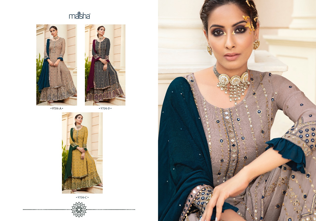 Buy Online Maisha New Georgette Suit Collection Series 9704 A To 9704 G Single And Set Stockiest And Supplier From Surat 7 Pcs of Full Catalogue at Wholesale Price. Looking for Maisha New Georgette Suit Collection Series 9704 A To 9704 G Single And Set Stockiest And Supplier From Surat Full Catalouge at Best Price? Buy Now Maisha New Georgette Suit Collection Series 9704 A To 9704 G Single And Set Stockiest And Supplier From Surat at Wholesale Rate of Rs 18487 with Total 7 Pcs from authroized dealer and supplier of MAISHA Brand. Cost of Each piece is just only Rs 2641 which is very low and affordable price to resale the product in your retail store ,This is Surat based Wholesale Supplier & Dealer of MAISHA Brand. Click on Brand name to Know more about MAISHA Brand's products.Call or Whatsapp on 9898838984 for booking or enquiry