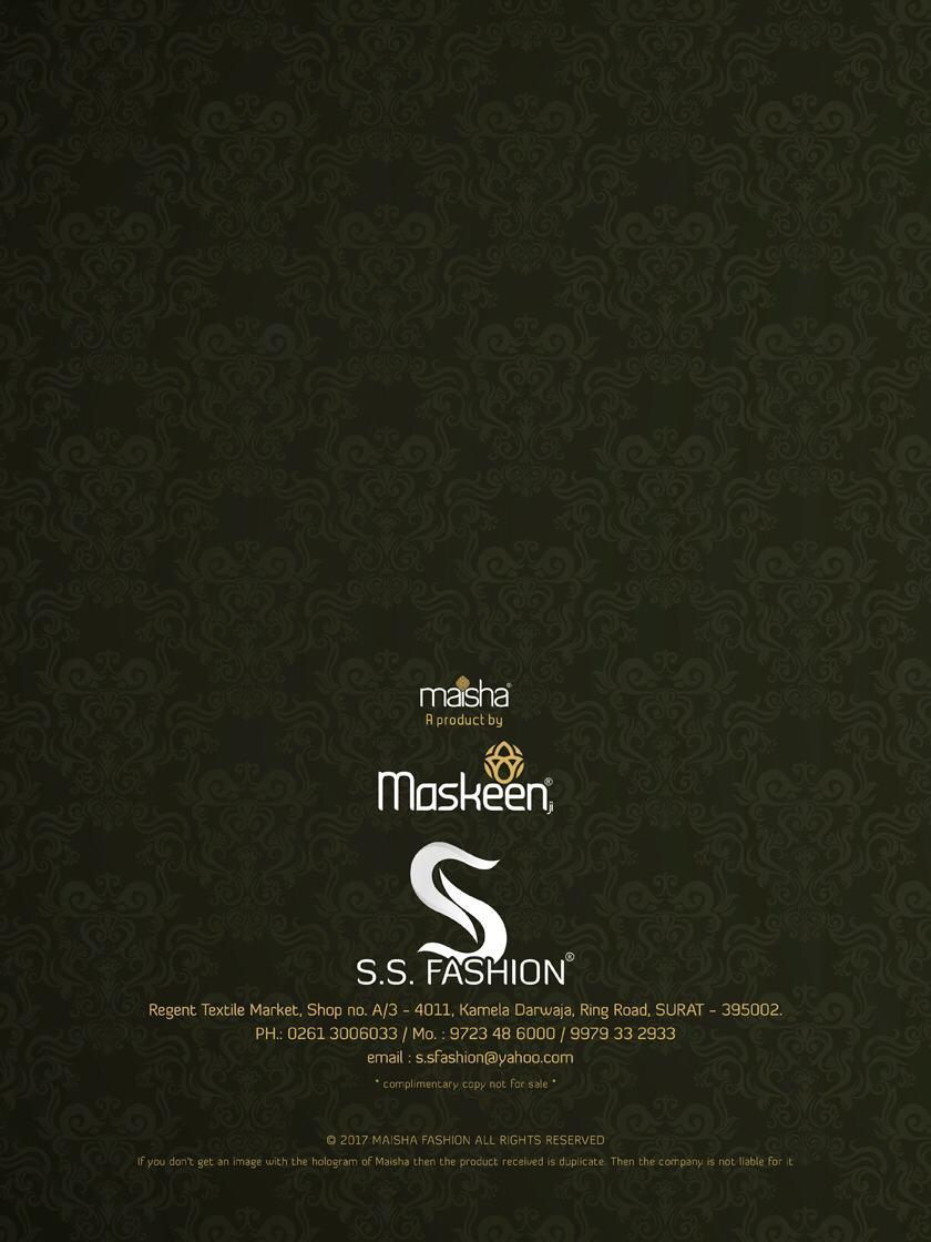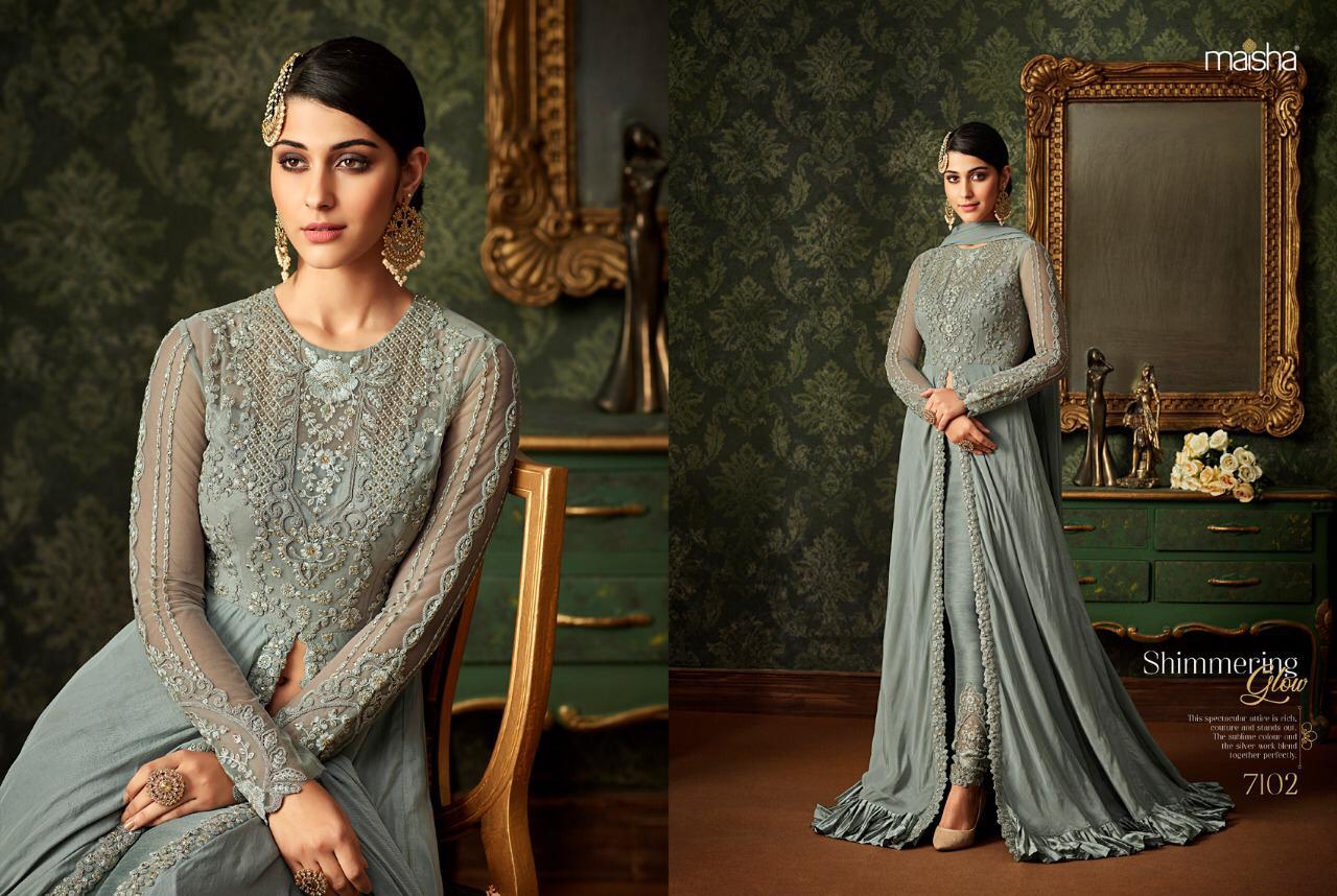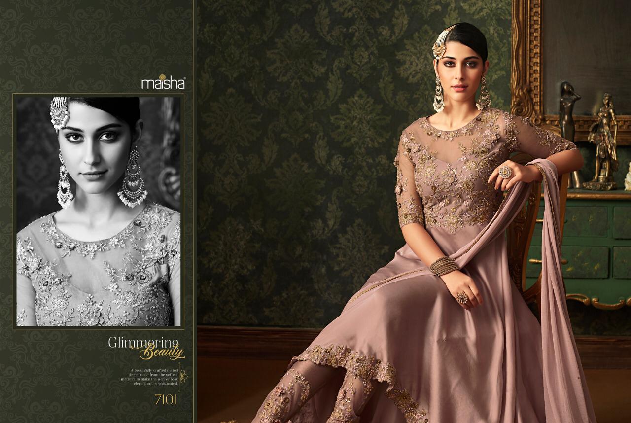 Buy Online Maisha Queen Of Hearts Series 7101 To 7107 Beautiful Designer Party Wear Suits Wholesale Supplier Surat 7 Pcs of Full Catalogue at Wholesale Price. Looking for Maisha Queen Of Hearts Series 7101 To 7107 Beautiful Designer Party Wear Suits Wholesale Supplier Surat Full Catalouge at Best Price? Buy Now Maisha Queen Of Hearts Series 7101 To 7107 Beautiful Designer Party Wear Suits Wholesale Supplier Surat at Wholesale Rate of Rs 18893 with Total 7 Pcs from authroized dealer and supplier of MAISHA Brand. Cost of Each piece is just only Rs 2699 which is very low and affordable price to resale the product in your retail store ,This is Surat based Wholesale Supplier & Dealer of MAISHA Brand. Click on Brand name to Know more about MAISHA Brand's products.Call or Whatsapp on 9898838984 for booking or enquiry