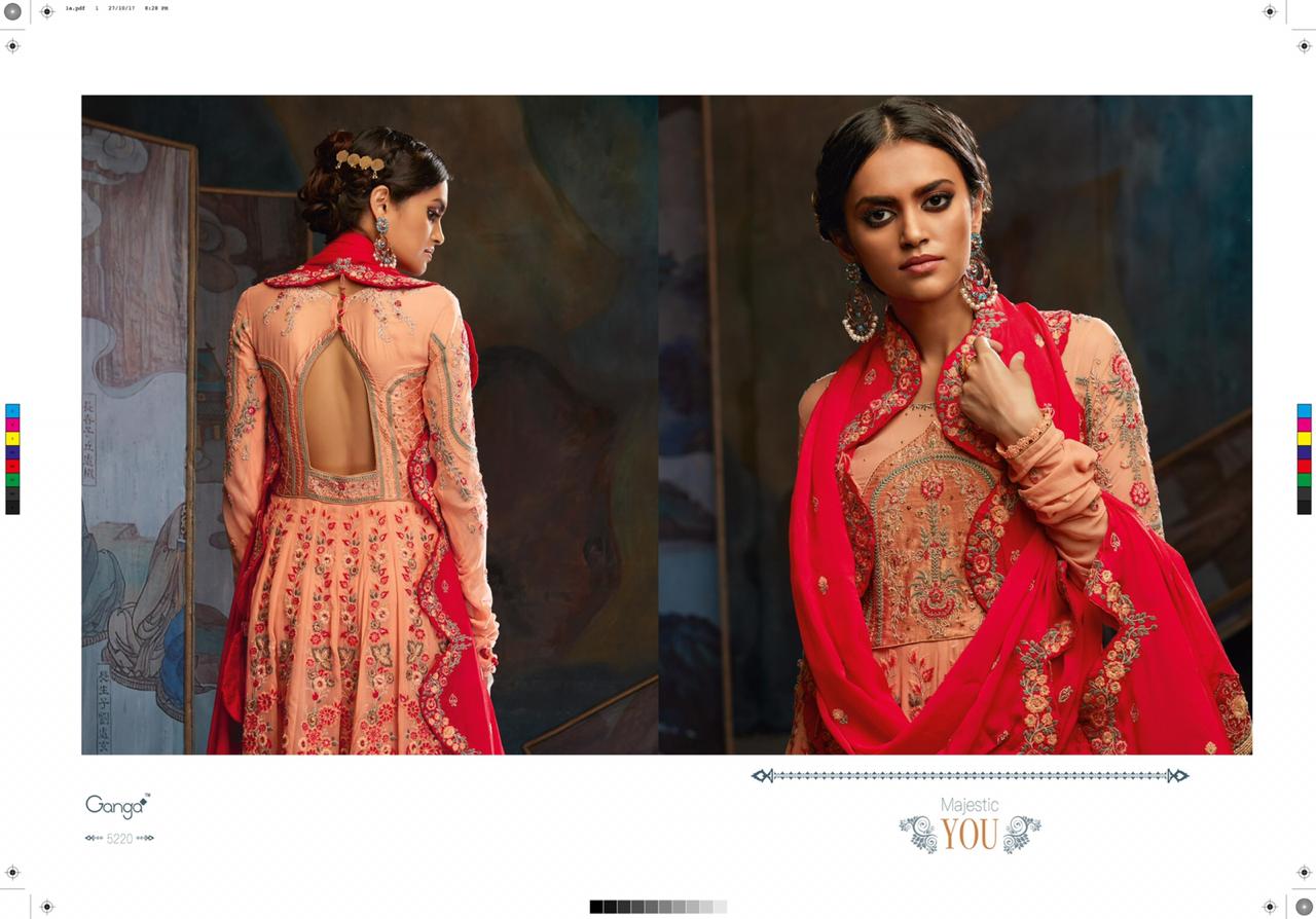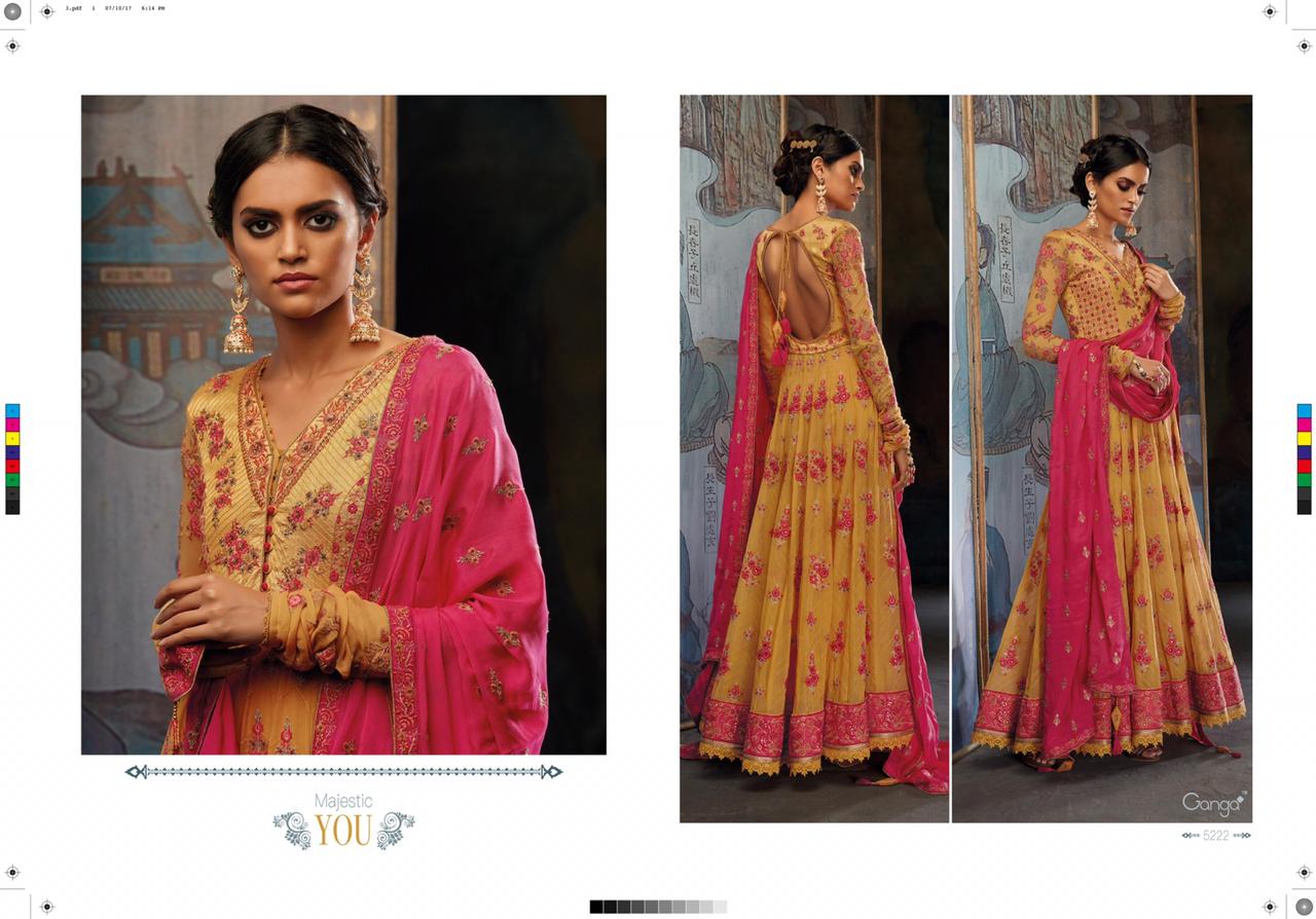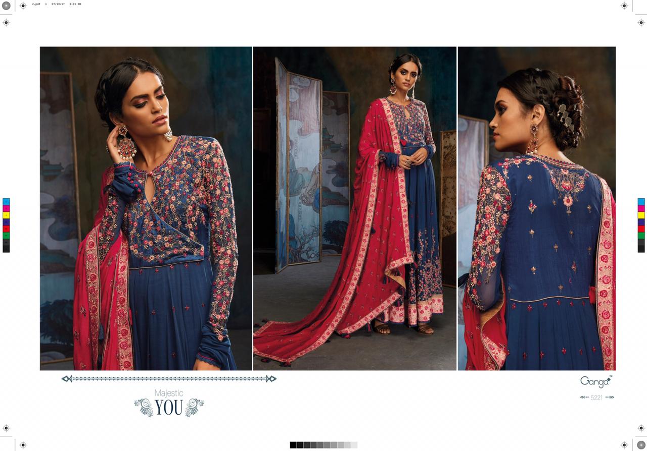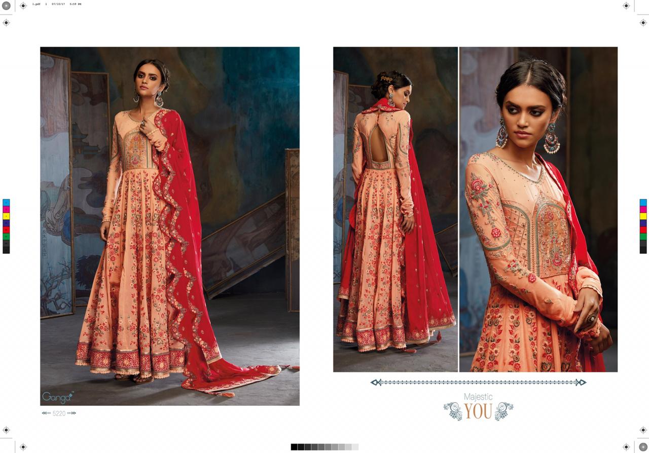 Buy Online Majestic You By Ganga 5220 Series Designer Bemberg Chiffon Party Wear Gown Collection Wholesale Dealer Surat 5 Pcs of Full Catalogue at Wholesale Price. Looking for Majestic You By Ganga 5220 Series Designer Bemberg Chiffon Party Wear Gown Collection Wholesale Dealer Surat Full Catalouge at Best Price? Buy Now Majestic You By Ganga 5220 Series Designer Bemberg Chiffon Party Wear Gown Collection Wholesale Dealer Surat at Wholesale Rate of Rs 27725 with Total 5 Pcs from authroized dealer and supplier of GANGA Brand. Cost of Each piece is just only Rs 5545 which is very low and affordable price to resale the product in your retail store ,This is Surat based Wholesale Supplier & Dealer of GANGA Brand. Click on Brand name to Know more about GANGA Brand's products.Call or Whatsapp on 9898838984 for booking or enquiry