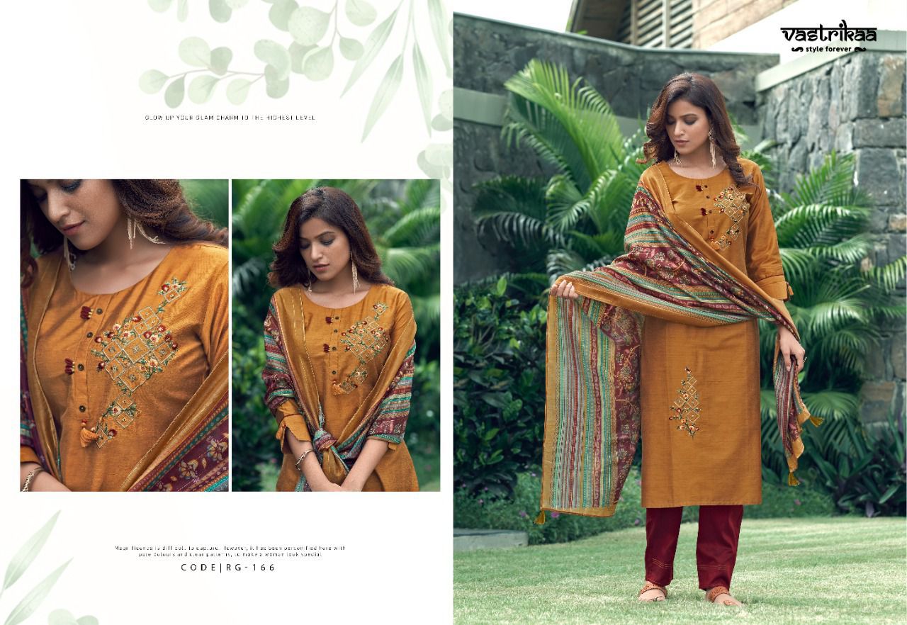BRAND NAME - ? Vastrikaa has launched CATALOG NAME : Majesty Vol-5 SERIES Â? 165 TO 170 ? Fabric Details ? ?Top & Bottom - Two tone Chanderi silk with work ?Dupatta- Digital print on Muslin with Lurex. ?Total Design :- 6 ?Size;- L, XL, 2XL ???? Ready Delivery ???? ?RATE:- 950/- per pcs + GST SET TO SET ?Booking started from now.. ?Order your's soon with Gst & Transport details.... Thanking You, Team Vastrikaa |