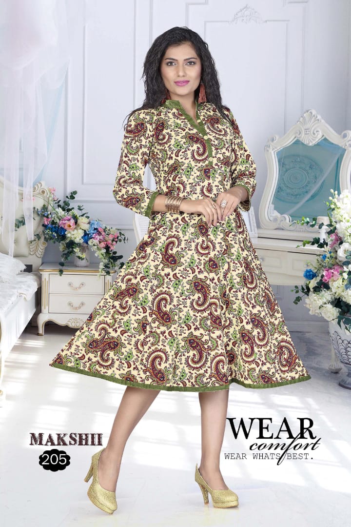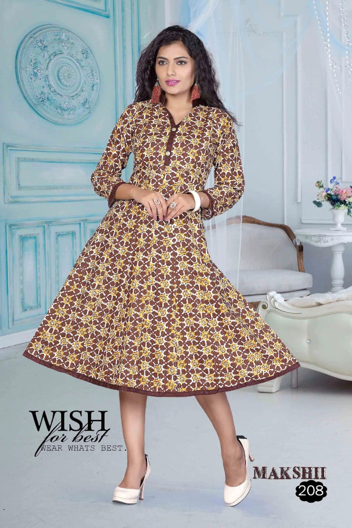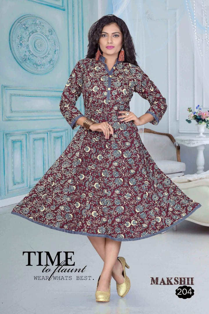 Makshii Nri Anarkali Pattern Cotton Kurtis Wholesale Supplier And Dealer Surat