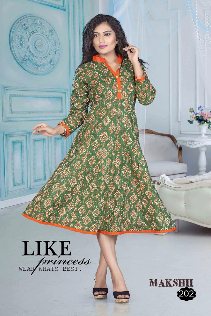 Buy Online Makshii Nri Anarkali Pattern Cotton Kurtis Wholesale Supplier And Dealer Surat 10 Pcs of Full Catalogue at Wholesale Price. Looking for Makshii Nri Anarkali Pattern Cotton Kurtis Wholesale Supplier And Dealer Surat Full Catalouge at Best Price? Buy Now Makshii Nri Anarkali Pattern Cotton Kurtis Wholesale Supplier And Dealer Surat at Wholesale Rate of Rs 3100 with Total 10 Pcs from authroized dealer and supplier of BRAND'S Brand. Cost of Each piece is just only Rs 310 which is very low and affordable price to resale the product in your retail store ,This is Surat based Wholesale Supplier & Dealer of BRAND'S Brand. Click on Brand name to Know more about BRAND'S Brand's products.Call or Whatsapp on 9898838984 for booking or enquiry