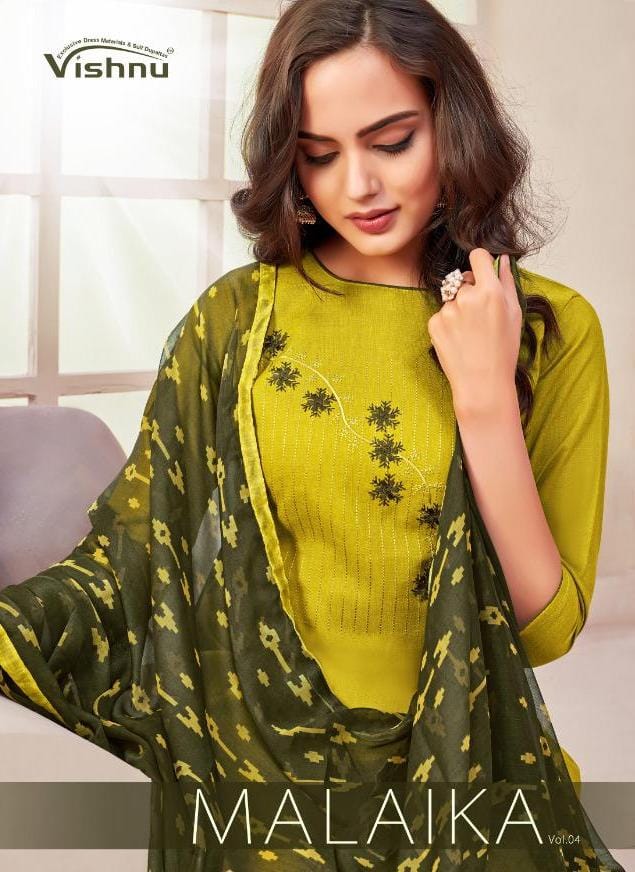 Buy Online Malaika By Vishnu Impex Manufacturer Traders Surat 12 Pcs of Full Catalogue at Wholesale Price. Looking for Malaika By Vishnu Impex Manufacturer Traders Surat Full Catalouge at Best Price? Buy Now Malaika By Vishnu Impex Manufacturer Traders Surat at Wholesale Rate of Rs 5400 with Total 12 Pcs from authroized dealer and supplier of VISHNU IMPEX Brand. Cost of Each piece is just only Rs 450 which is very low and affordable price to resale the product in your retail store ,This is Surat based Wholesale Supplier & Dealer of VISHNU IMPEX Brand. Click on Brand name to Know more about VISHNU IMPEX Brand's products.Call or Whatsapp on 9898838984 for booking or enquiry