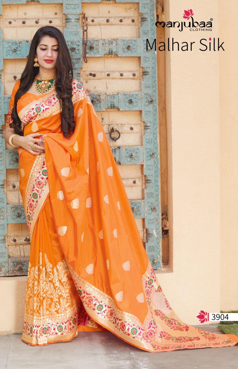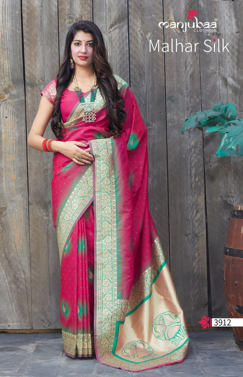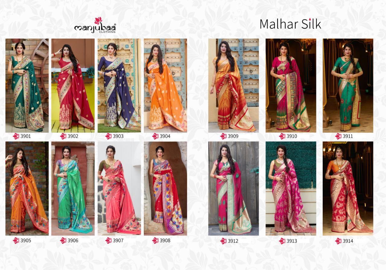 Malhar Silk By Manjubaa Series 3901 To 3914 Silk Sarees Set And Single Wholesale Supplier Gujarat