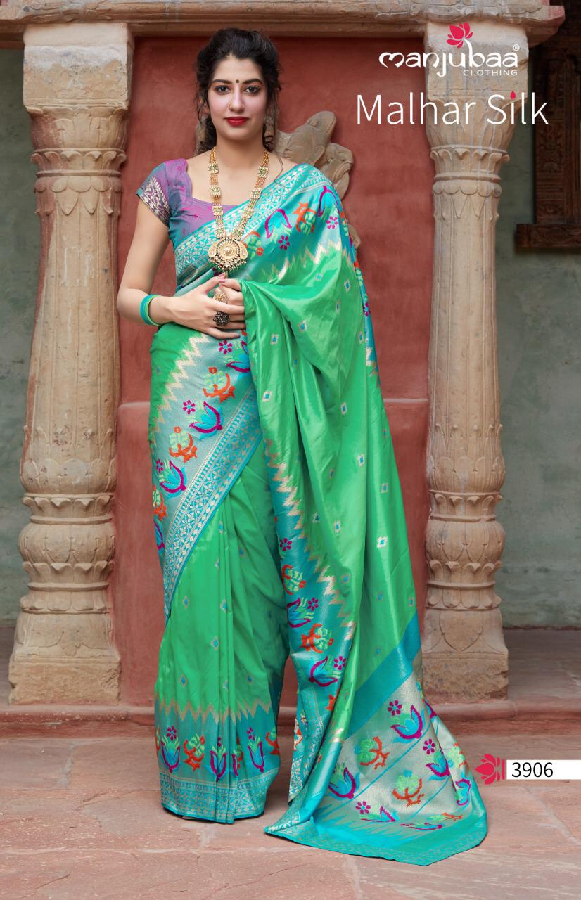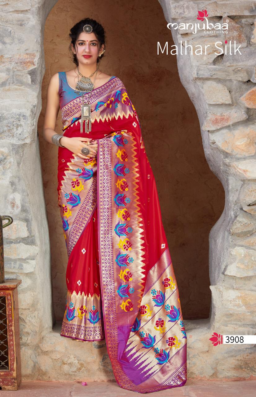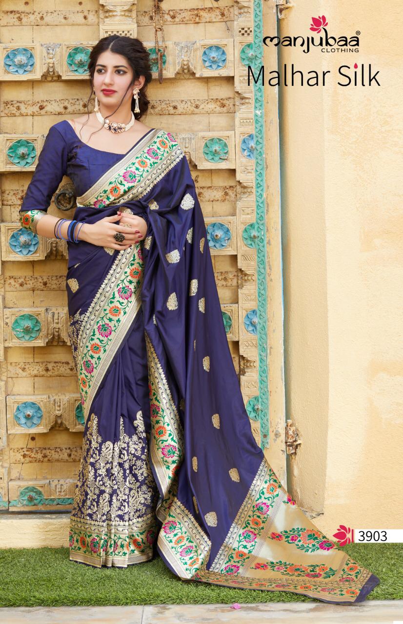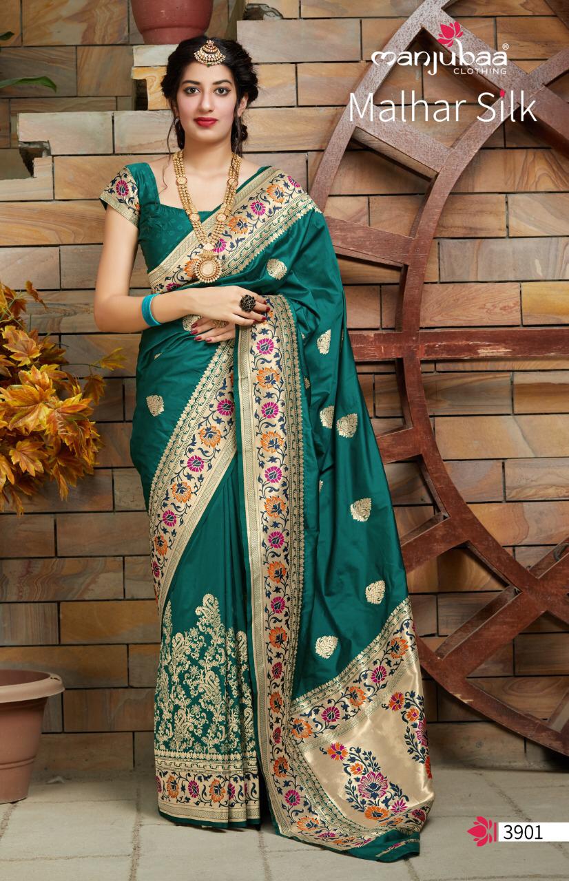 Malhar Silk By Manjubaa Series 3901 To 3914 Silk Sarees Set And Single Wholesale Supplier Gujarat
