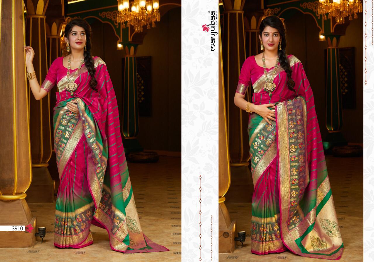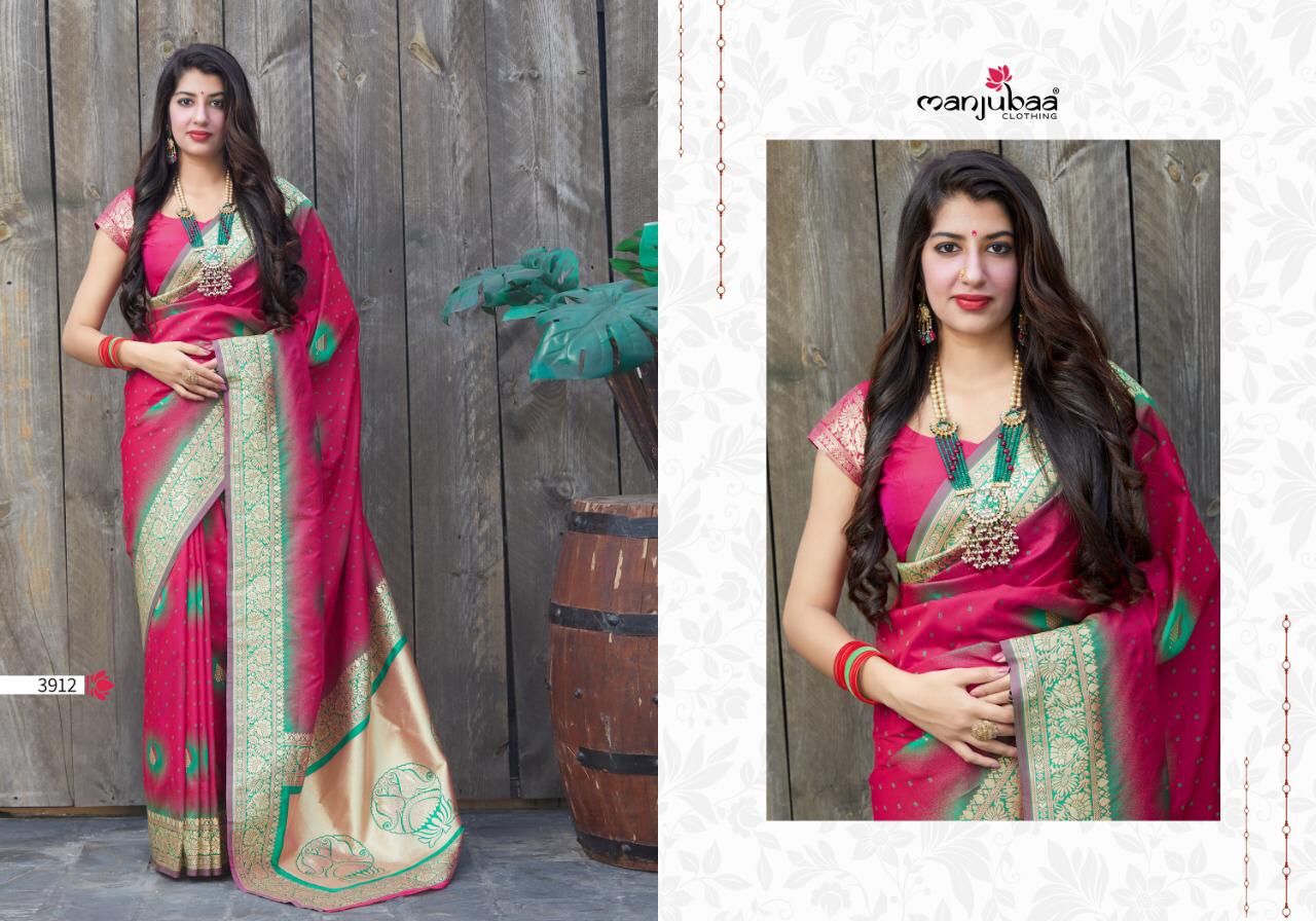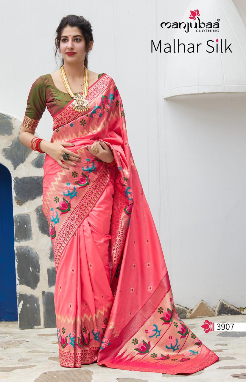 *Manjubaa* New Catalog Launch - *Malhar Silk* *Series 3901 To 3914* *Price-list* *3901 - 2095/-* *3902 - 2095/-* *3903 - 2095/-* *3904 - 2095/-* *3905 - 2095/-* *3906 - 2095/-* *3907 - 2095/-* *3908 - 2095/-* *3909 - 2295/-* *3910 - 2295/-* *3911 - 2195/-* *3912 - 2195/-* *3913 - 2195/-* *3914 - 2195/-* Single Price extra 100 Set & loose & singel . Loose pcs available. Soft silk . Delivery from tomorrow |