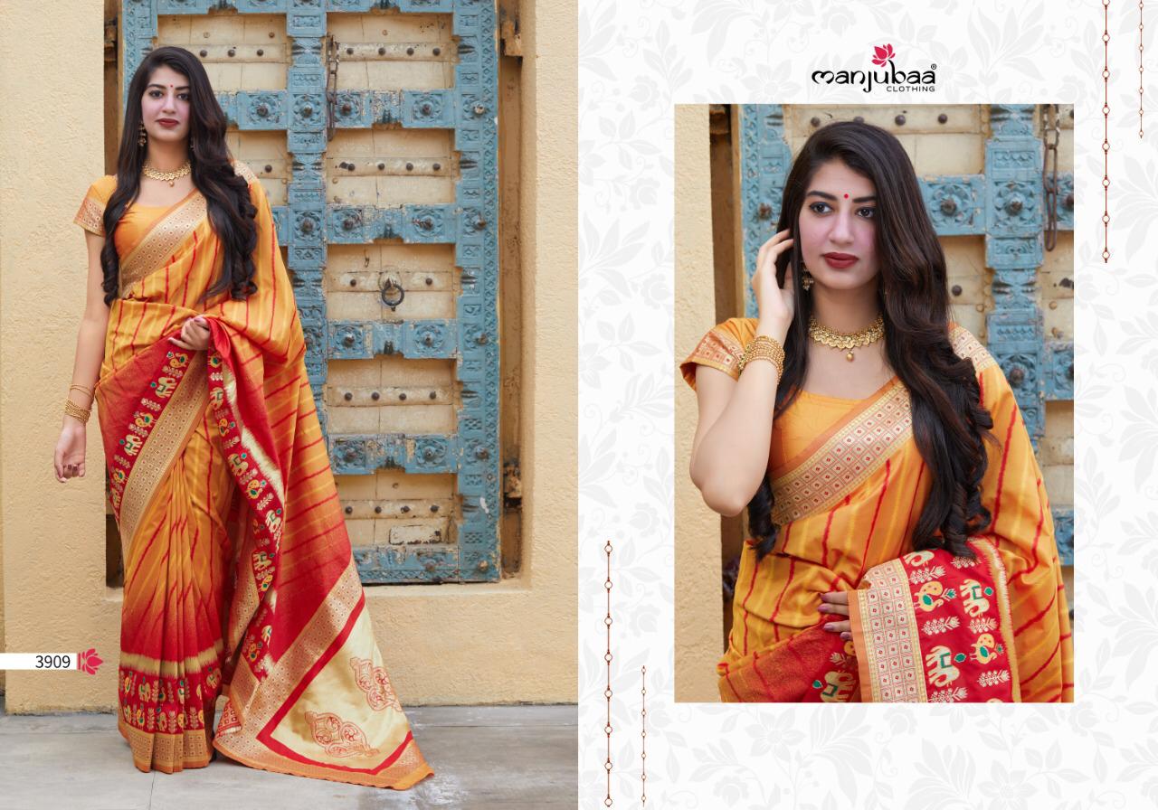 Buy Online Malhar Silk By Manjubaa Series 3901 To 3914 Silk Sarees Set And Single Wholesale Supplier Gujarat 0 Pcs of Full Catalogue at Wholesale Price. Looking for Malhar Silk By Manjubaa Series 3901 To 3914 Silk Sarees Set And Single Wholesale Supplier Gujarat Full Catalouge at Best Price? Buy Now Malhar Silk By Manjubaa Series 3901 To 3914 Silk Sarees Set And Single Wholesale Supplier Gujarat at Wholesale Rate of Rs 0 with Total 0 Pcs from authroized dealer and supplier of Manjubaa Clothing Brand. Cost of Each piece is just only Rs 0 which is very low and affordable price to resale the product in your retail store ,This is Surat based Wholesale Supplier & Dealer of Manjubaa Clothing Brand. Click on Brand name to Know more about Manjubaa Clothing Brand's products.Call or Whatsapp on 9898838984 for booking or enquiry