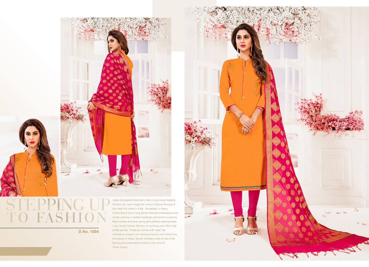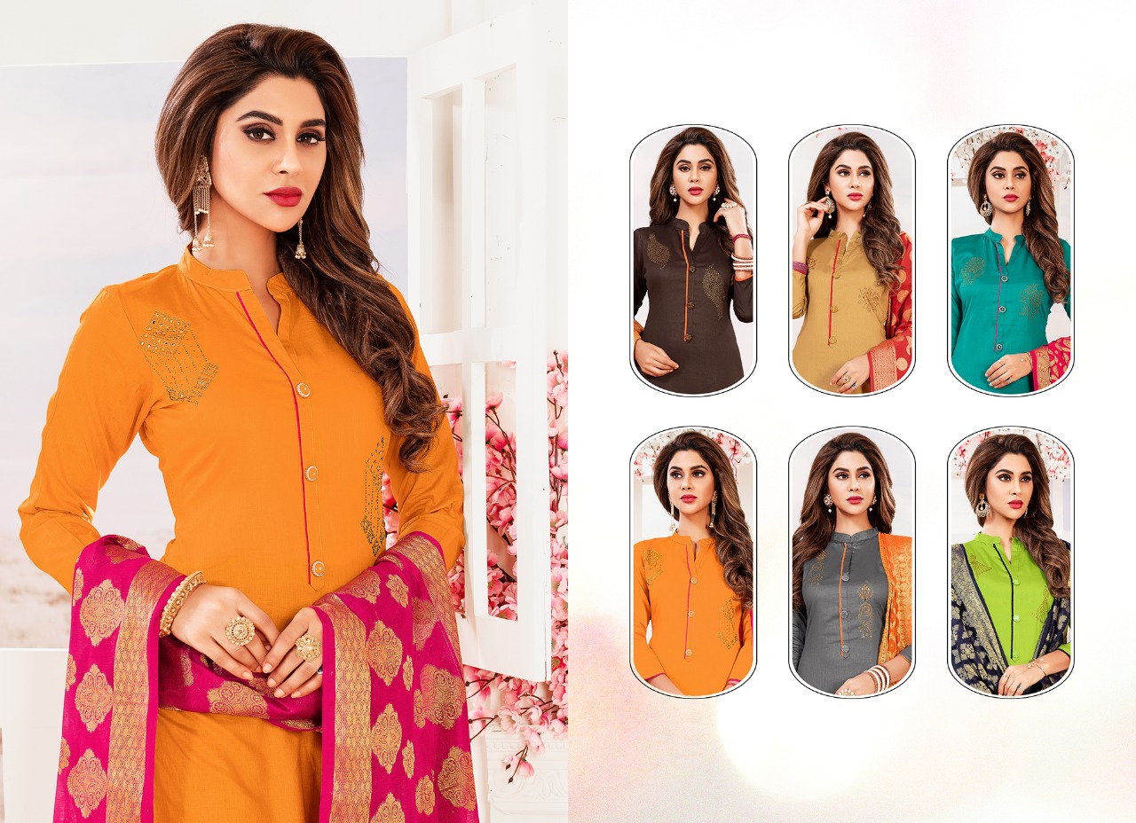 *"UTSAV SUITS"*_ BRAND CREATED BY YOU It is a brand synonymous with sophistication and style it is for the women of today,who prefers to make a statement whenever she step out. We r now Introducing *..."MAN MAHEK"...* SEMI STITCHED 48 LENGTH ?Quality Fabrics.... ?Best Designs.... ?Latest Colours.... ?Rich Combinations.... @ unbelievable price, Fabric Details:- ? Top :-Glaze Cotton ? Bot :- pure cotton (PC) ??Dup :-Pure Banarasi ? Rate :- 6?9?5? ?DESIGN:-. 6? Have a look to this awesome catalogue & book your orders... Always with you.... Team:- UTSAV SUITS Delivery 3-4 days . Set to Set Only . GST 5 Percent Extra. Book your order now . |