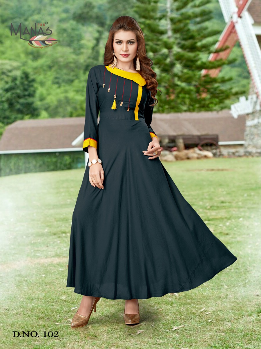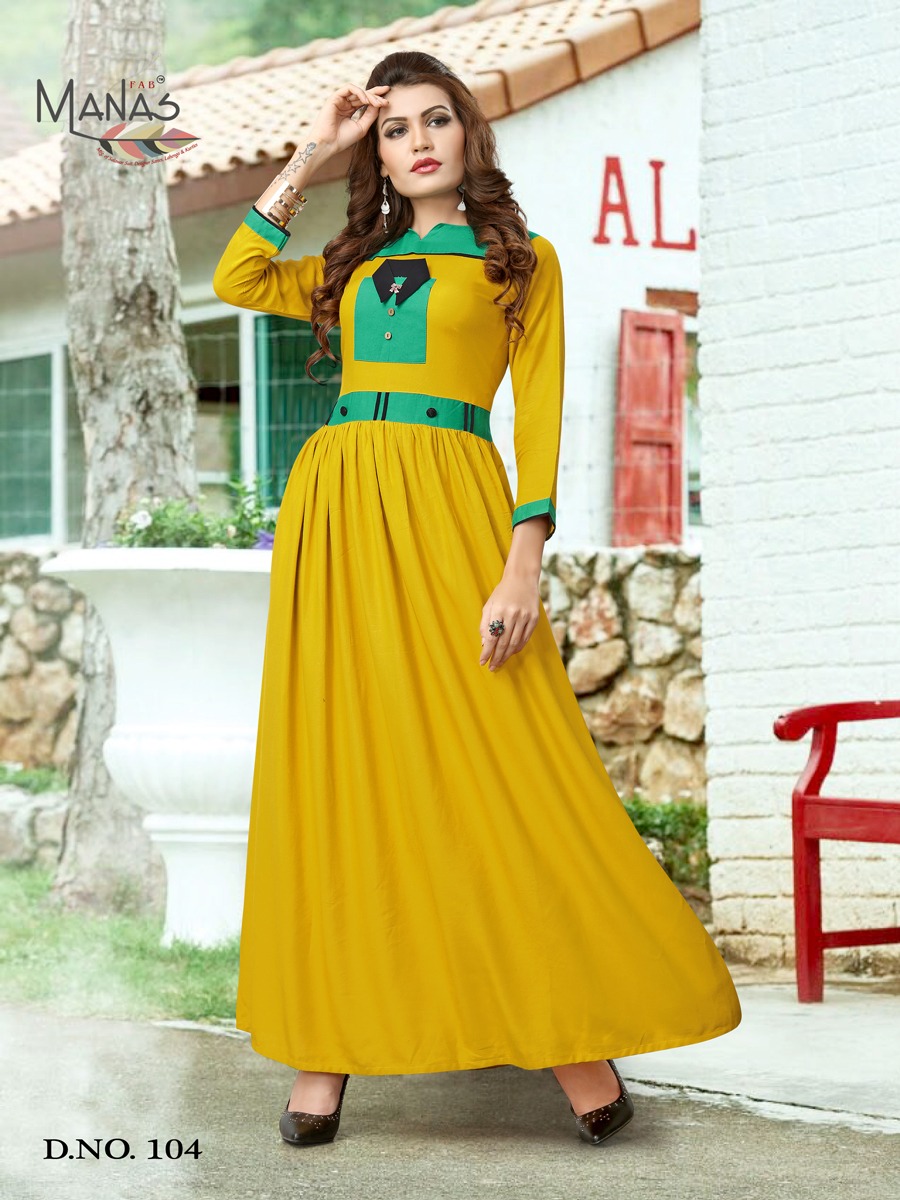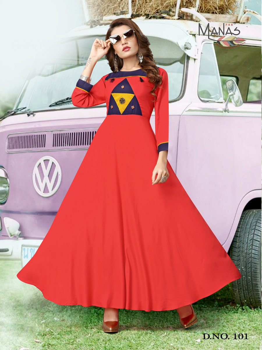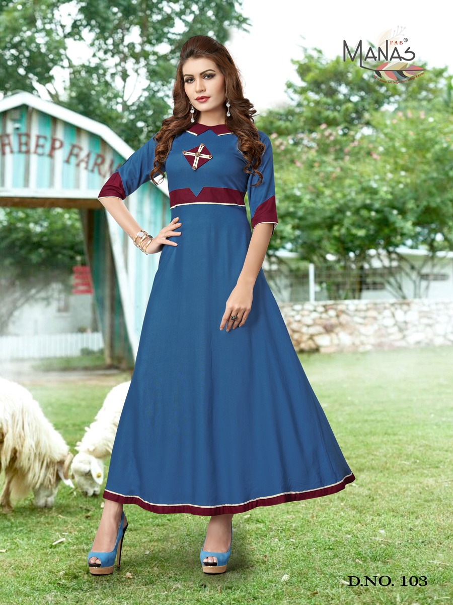 Manas Dhiya Vol 1 101 Series Designer Reyon Kurti Catlog Wholesale Dealer And Supplier Surat