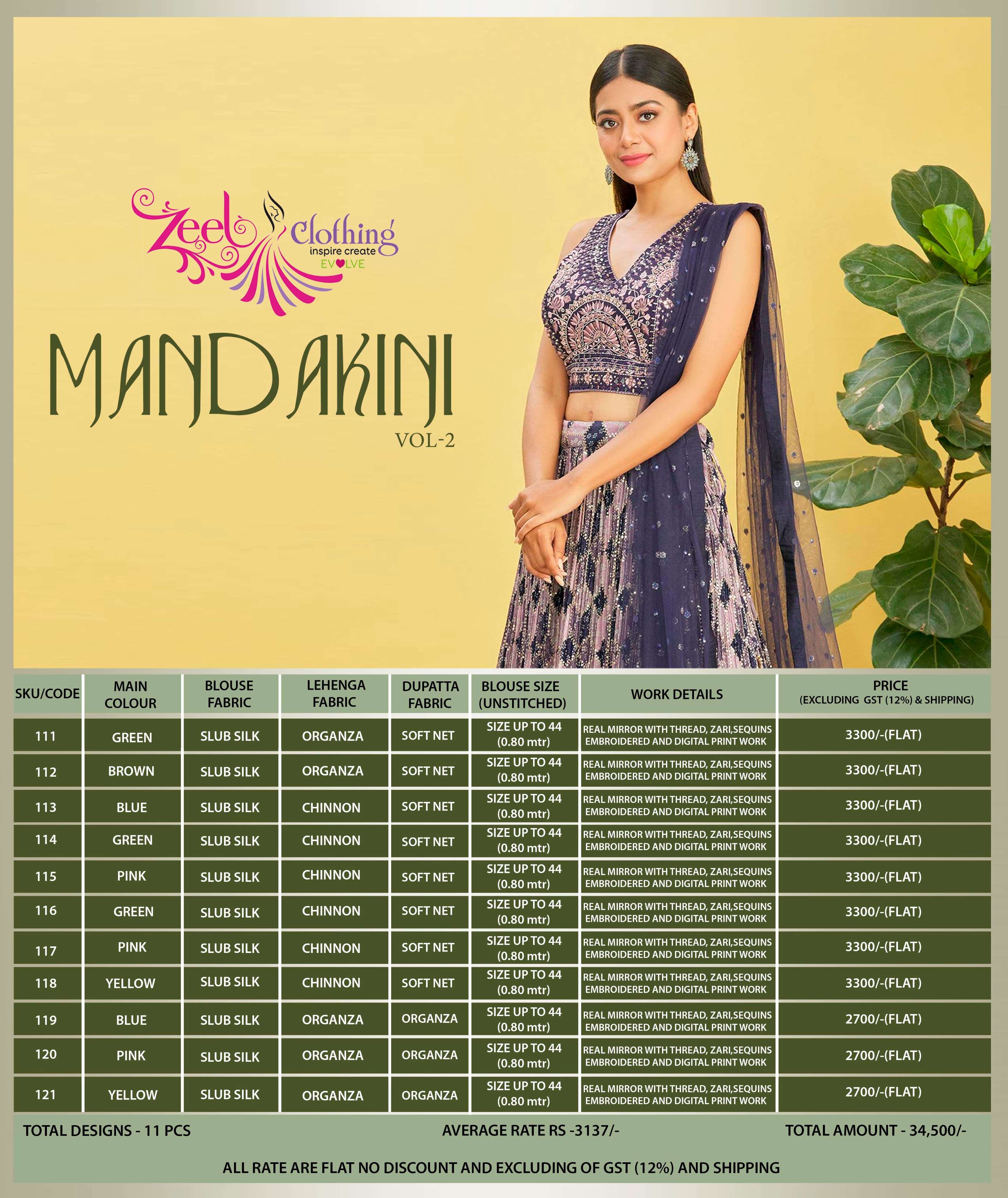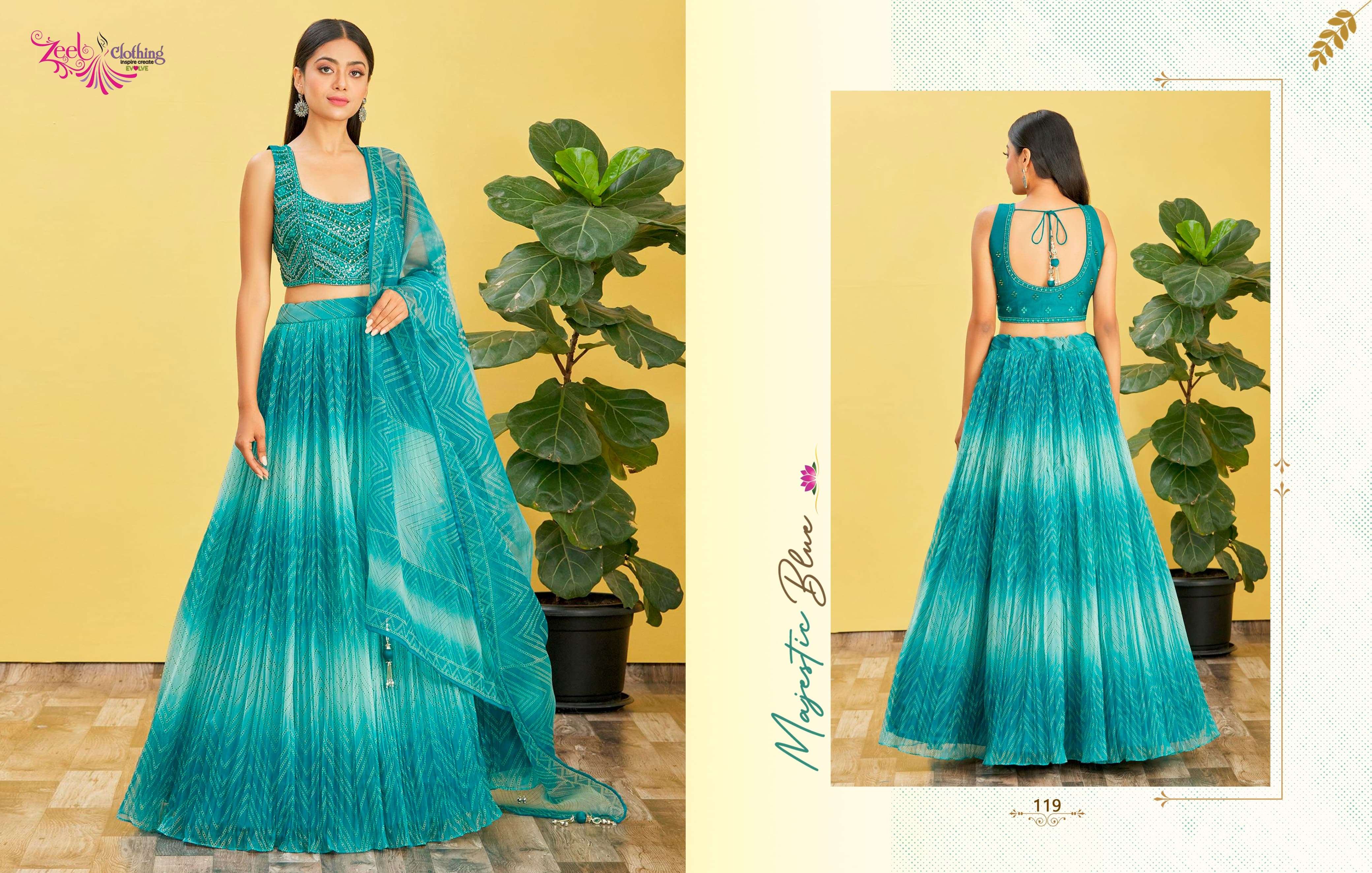 Buy Online Mandakini Vol 2 by Zeel Clothing organza lehenga choli collection manufacturer surat 10 Pcs of Full Catalogue at Wholesale Price. Looking for Mandakini Vol 2 by Zeel Clothing organza lehenga choli collection manufacturer surat Full Catalouge at Best Price? Buy Now Mandakini Vol 2 by Zeel Clothing organza lehenga choli collection manufacturer surat at Wholesale Rate of Rs 0 with Total 10 Pcs from authroized dealer and supplier of Zeel Clothing Brand. Cost of Each piece is just only Rs 0 which is very low and affordable price to resale the product in your retail store ,This is Surat based Wholesale Supplier & Dealer of Zeel Clothing Brand. Click on Brand name to Know more about Zeel Clothing Brand's products.Call or Whatsapp on 9898838984 for booking or enquiry