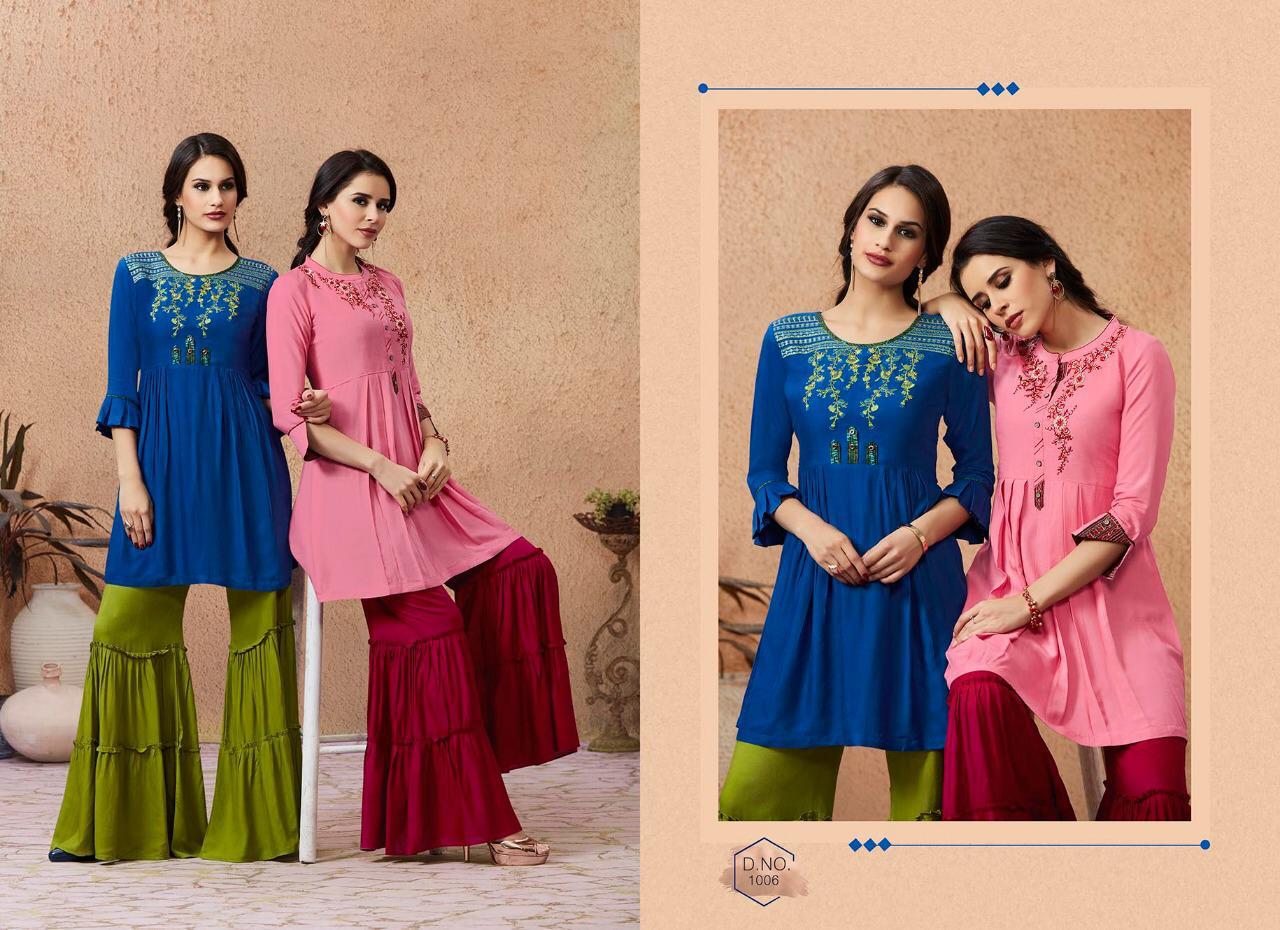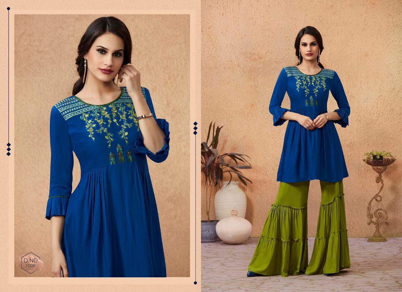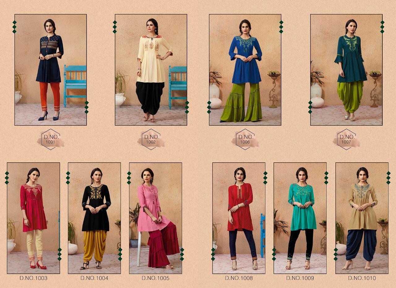 ? *Kajree* has launched _Catalog name_ : *Mandonna Vol - 3* ? _Fabric Details_ ? ?Top :- Rayon Embroidered Work Top ?Bottom: 1001-Rayon Pant with Embroidered Work 1002-Rayon Dhoti Patiala 1003-Rayon Pant with Embroidered Work 1004-Rayon Dhoti Patiala 1005-Rayon Sharara 1006-Rayon Sharara 1007-Rayon Dhoti Patiala 1008-Rayon Pant with Embroidered Work 1009-Rayon Pant with Embroidered Work 1010-Rayon Dhoti Patiala ?Total Design :- 9 ?Size:- M-38, L-40, XL-42, XXL-44 Rate -699 per pcs . Set To Set . ?Dispatching 5 to 6 days later ?Booking started from now... ?Order yours soon.... |