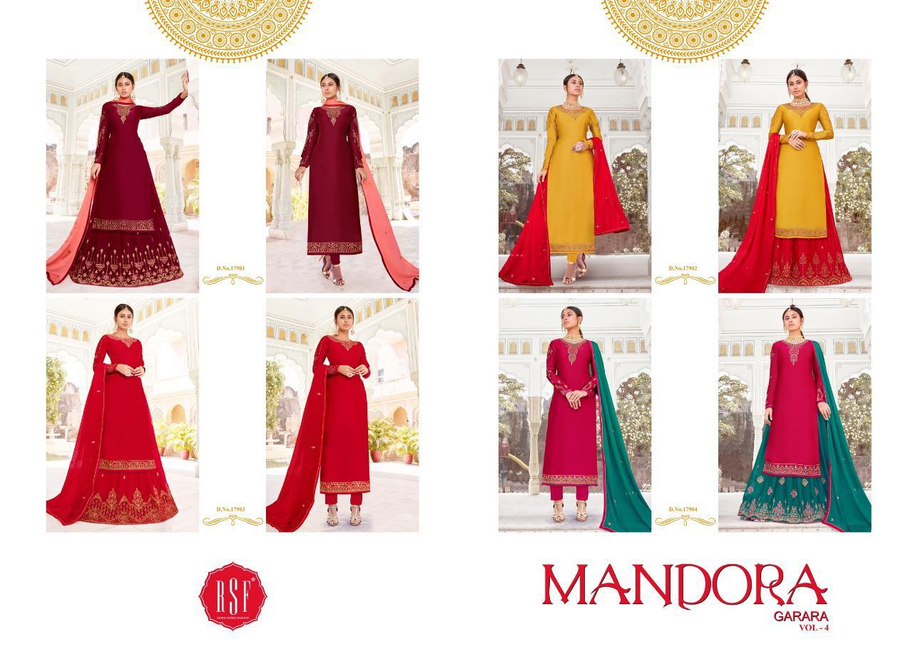 Buy Online Mandora Vol 4 By Rsf Designer Party Wear Suits Wholesale Supplier Gujarat 6 Pcs of Full Catalogue at Wholesale Price. Looking for Mandora Vol 4 By Rsf Designer Party Wear Suits Wholesale Supplier Gujarat Full Catalouge at Best Price? Buy Now Mandora Vol 4 By Rsf Designer Party Wear Suits Wholesale Supplier Gujarat at Wholesale Rate of Rs 10770 with Total 6 Pcs from authroized dealer and supplier of RSF Brand. Cost of Each piece is just only Rs 1795 which is very low and affordable price to resale the product in your retail store ,This is Surat based Wholesale Supplier & Dealer of RSF Brand. Click on Brand name to Know more about RSF Brand's products.Call or Whatsapp on 9898838984 for booking or enquiry