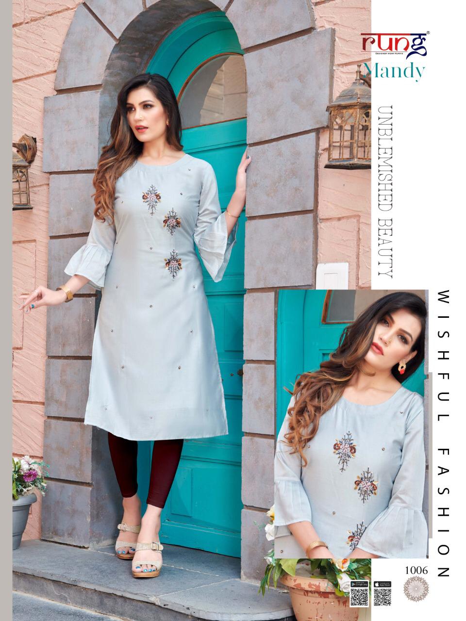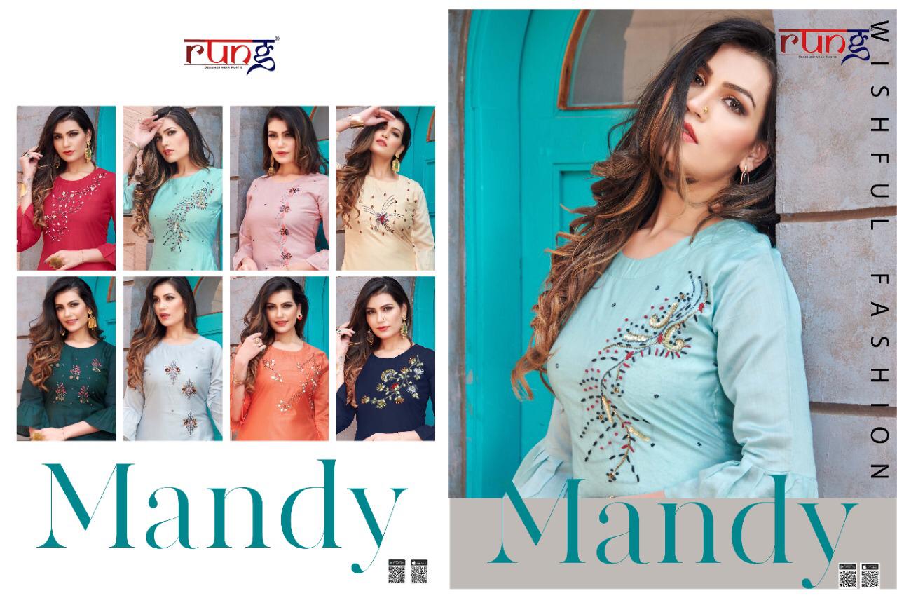 Buy Online Mandy By Rung Manufacturer Traders Surat 8 Pcs of Full Catalogue at Wholesale Price. Looking for Mandy By Rung Manufacturer Traders Surat Full Catalouge at Best Price? Buy Now Mandy By Rung Manufacturer Traders Surat at Wholesale Rate of Rs 3320 with Total 8 Pcs from authroized dealer and supplier of RUNG Brand. Cost of Each piece is just only Rs 415 which is very low and affordable price to resale the product in your retail store ,This is Surat based Wholesale Supplier & Dealer of RUNG Brand. Click on Brand name to Know more about RUNG Brand's products.Call or Whatsapp on 9898838984 for booking or enquiry
