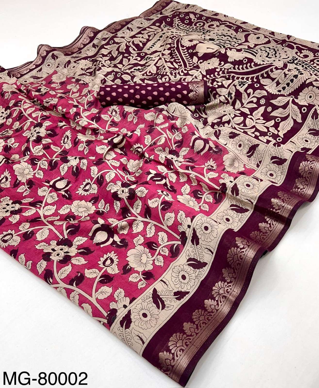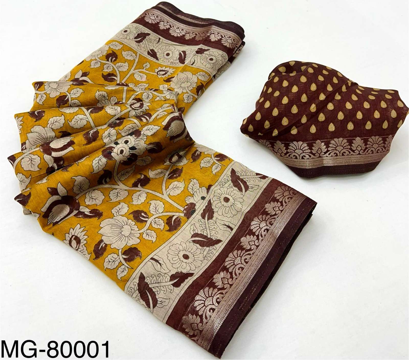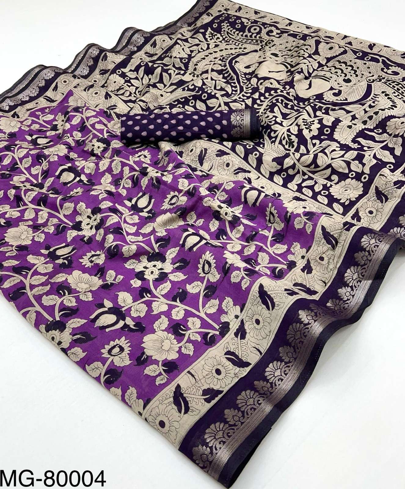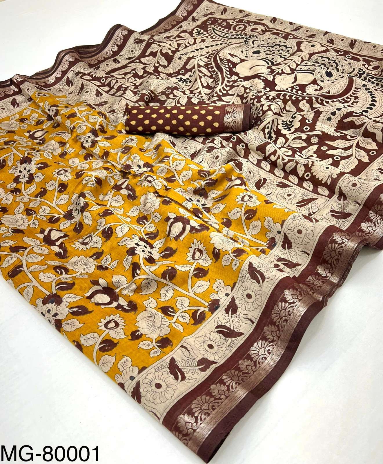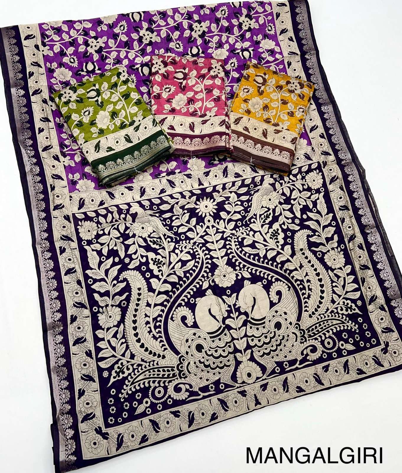 ➡️Catalog - *Mangalgiri* ➡️Fabric - *Soft Mangalgiri Cotton with Designer Kalamkari Printed & Viscous Zari border* ➡️Rate - *695+5%*
