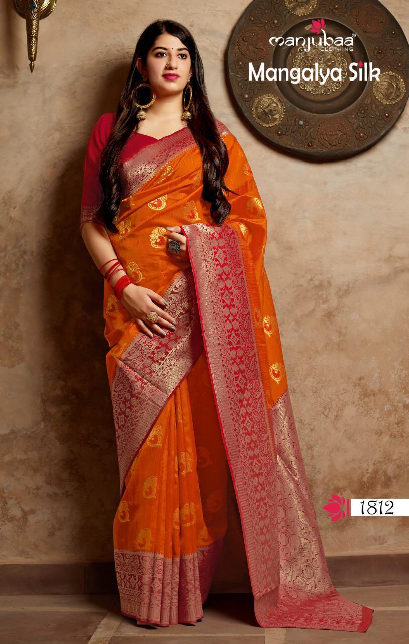 Buy Online Mangalya Silk By Manjuba Series 1801 To 1812 Silk Sarees Set And Single Wholesale Supplier Gujarat 12 Pcs of Full Catalogue at Wholesale Price. Looking for Mangalya Silk By Manjuba Series 1801 To 1812 Silk Sarees Set And Single Wholesale Supplier Gujarat Full Catalouge at Best Price? Buy Now Mangalya Silk By Manjuba Series 1801 To 1812 Silk Sarees Set And Single Wholesale Supplier Gujarat at Wholesale Rate of Rs 16140 with Total 12 Pcs from authroized dealer and supplier of Manjubaa Clothing Brand. Cost of Each piece is just only Rs 1345 which is very low and affordable price to resale the product in your retail store ,This is Surat based Wholesale Supplier & Dealer of Manjubaa Clothing Brand. Click on Brand name to Know more about Manjubaa Clothing Brand's products.Call or Whatsapp on 9898838984 for booking or enquiry