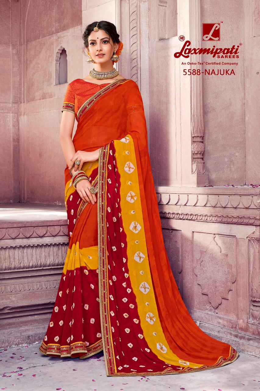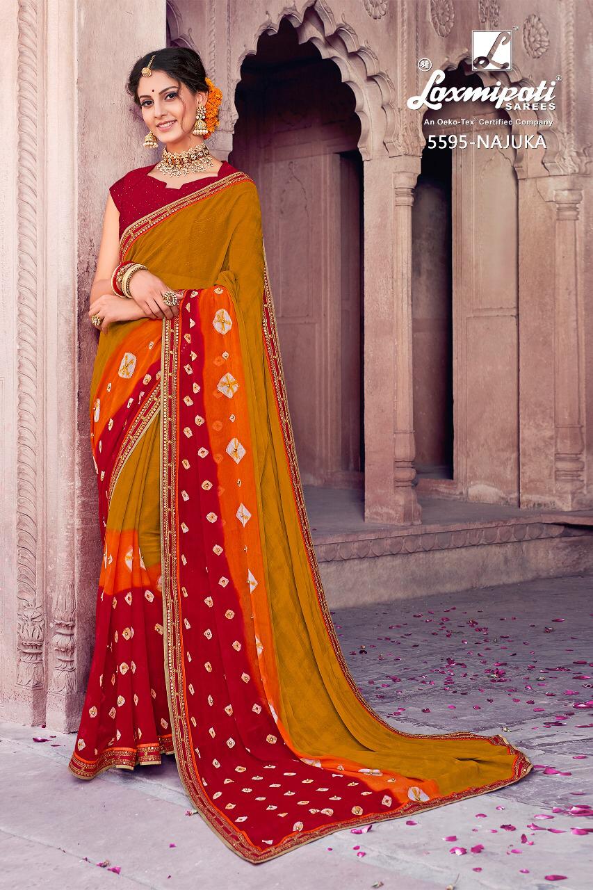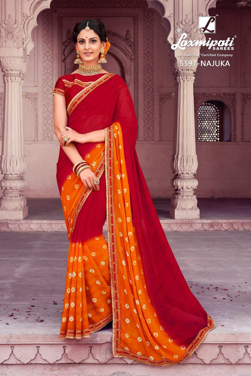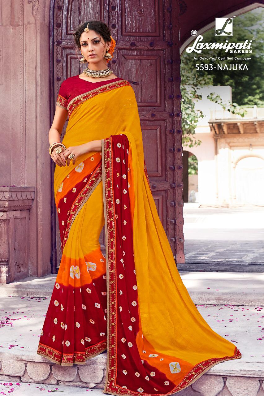 Mangani By Laxmipati Fancy Designer Pure Chiffon Chunri Bandhni Printe Saree Collection Wholesaler Surat