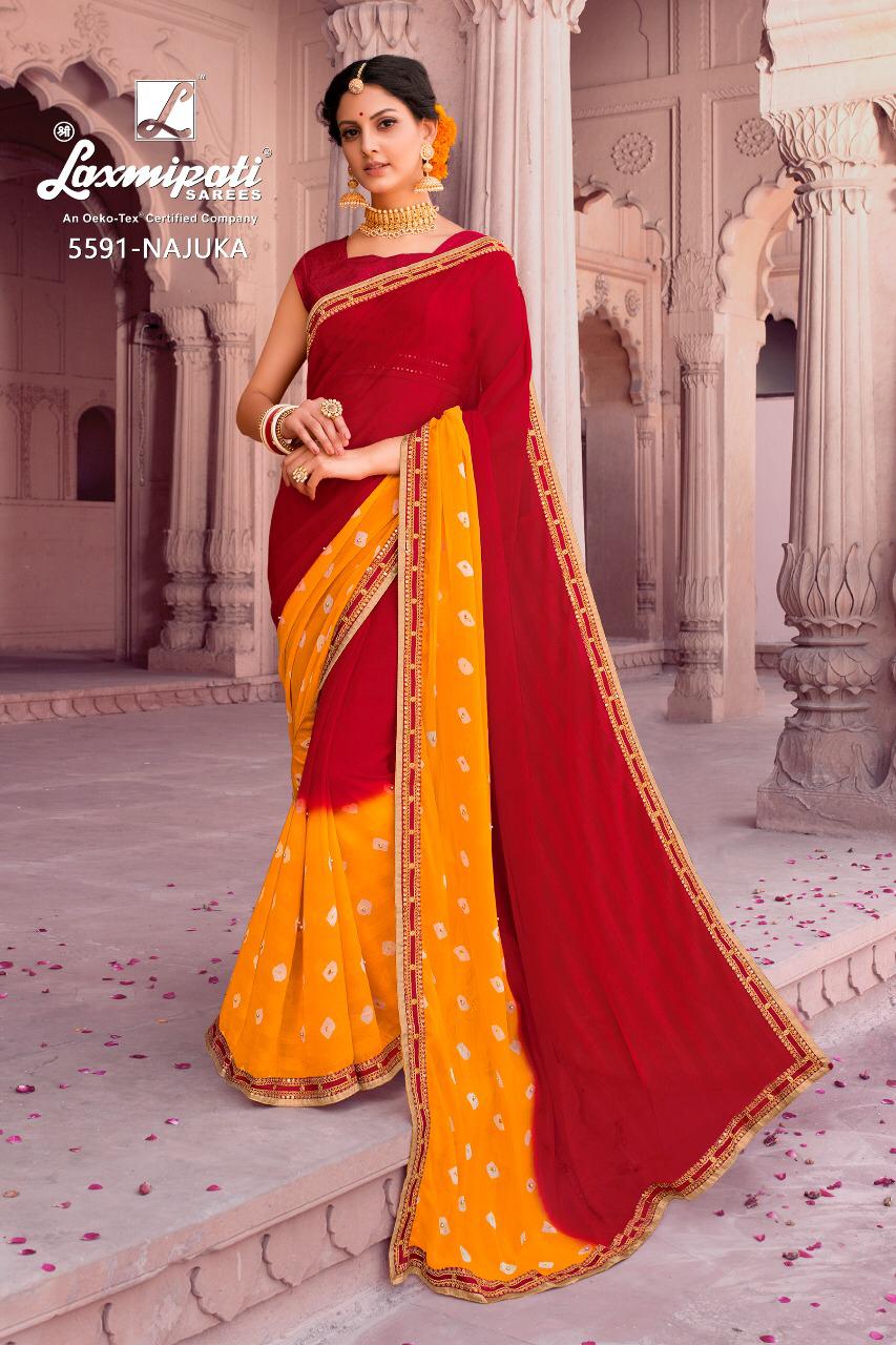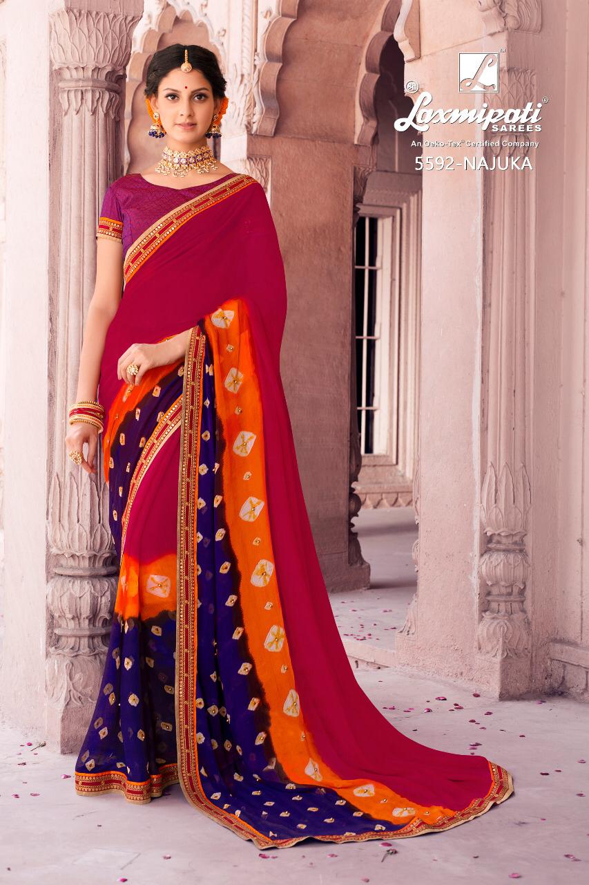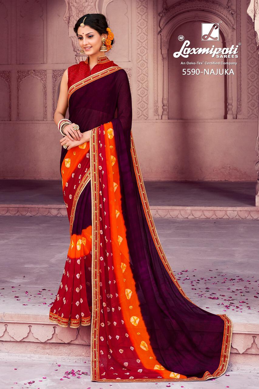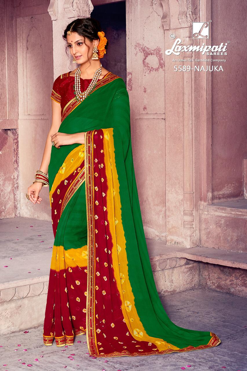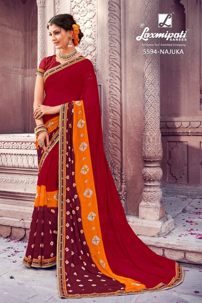 Mangani By Laxmipati Fancy Designer Pure Chiffon Chunri Bandhni Printe Saree Collection Wholesaler Surat