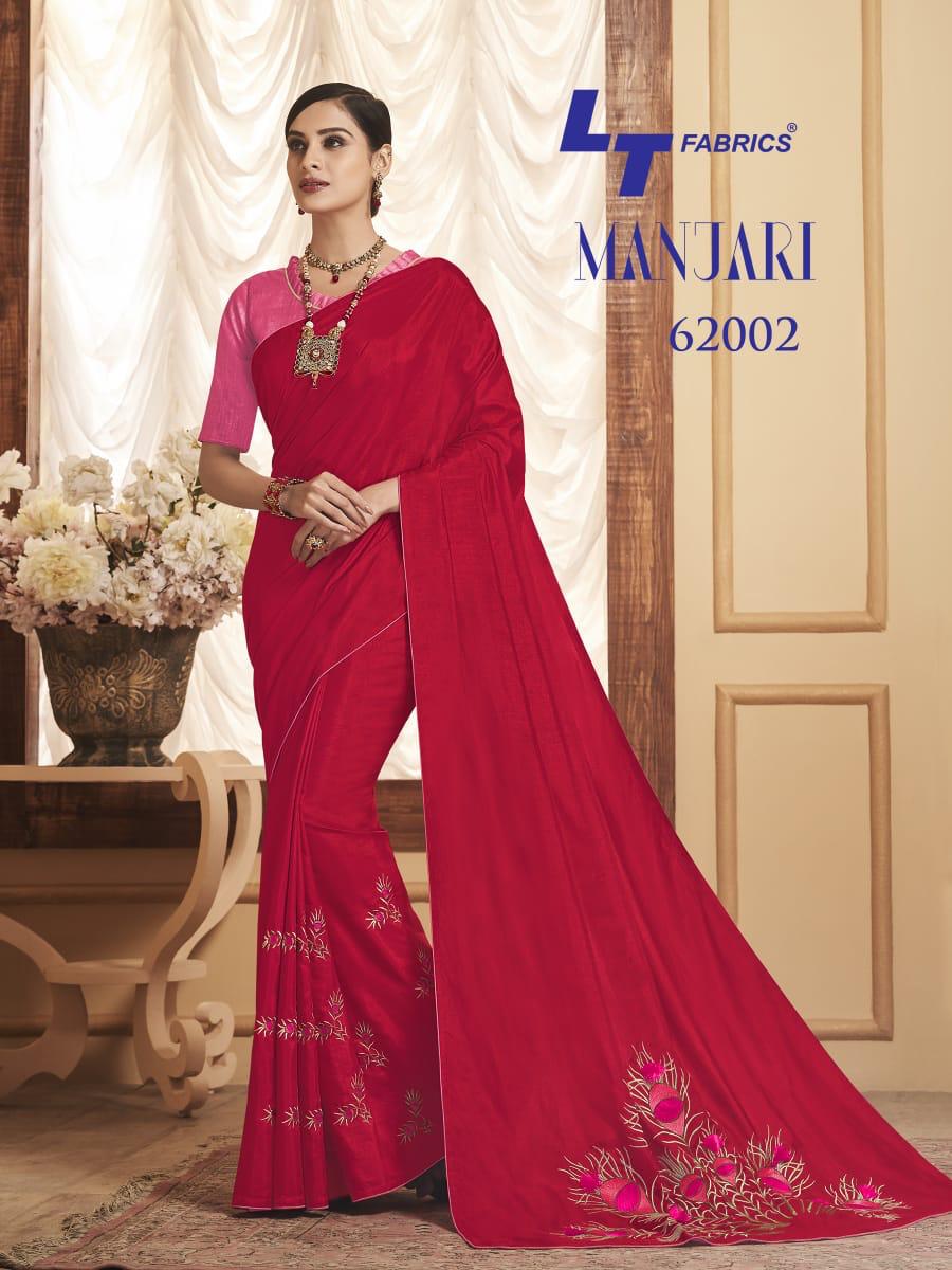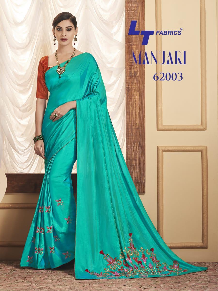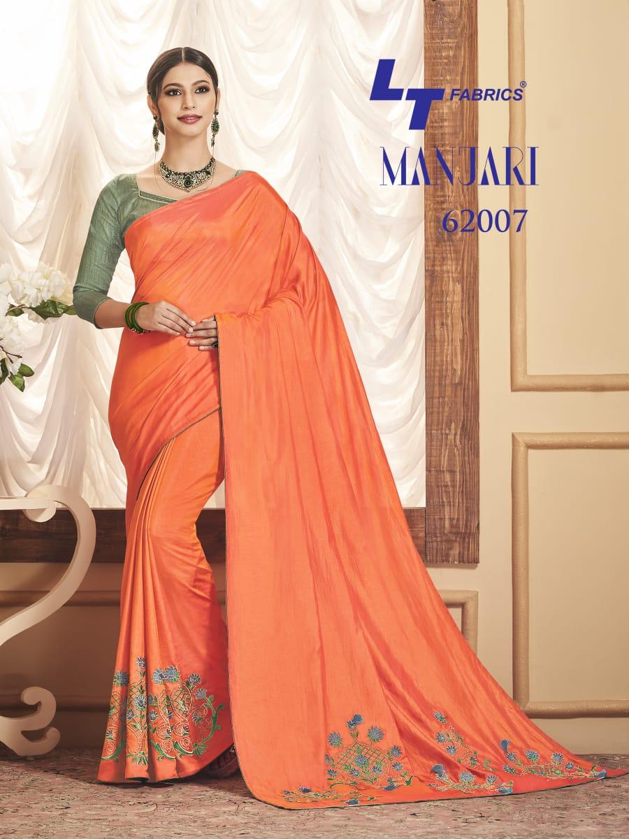 Buy Online Manjari By Lt Fabrics 62001 Series Fancy Sana Silk Resham Work Saree Collection Wholesaler Surat 10 Pcs of Full Catalogue at Wholesale Price. Looking for Manjari By Lt Fabrics 62001 Series Fancy Sana Silk Resham Work Saree Collection Wholesaler Surat Full Catalouge at Best Price? Buy Now Manjari By Lt Fabrics 62001 Series Fancy Sana Silk Resham Work Saree Collection Wholesaler Surat at Wholesale Rate of Rs 12950 with Total 10 Pcs from authroized dealer and supplier of LT FABRICS Brand. Cost of Each piece is just only Rs 1295 which is very low and affordable price to resale the product in your retail store ,This is Surat based Wholesale Supplier & Dealer of LT FABRICS Brand. Click on Brand name to Know more about LT FABRICS Brand's products.Call or Whatsapp on 9898838984 for booking or enquiry