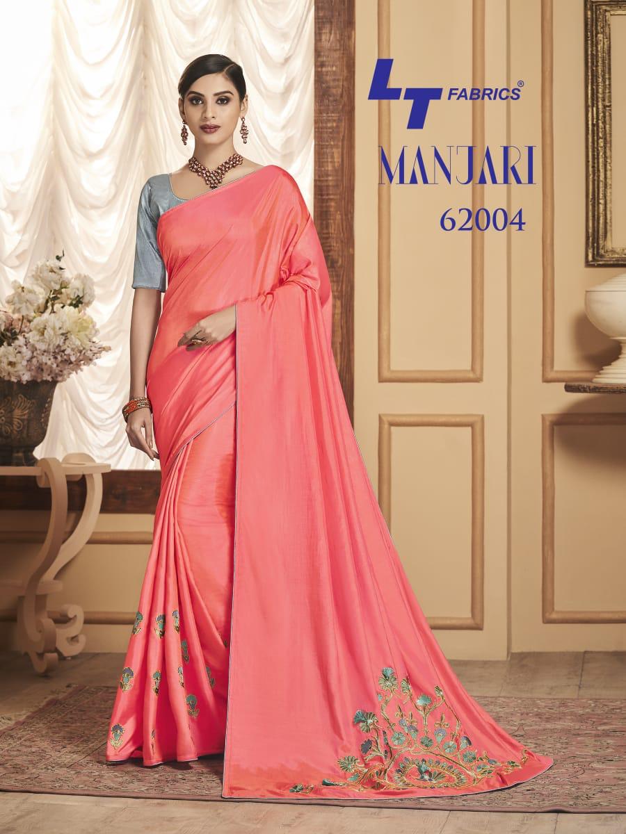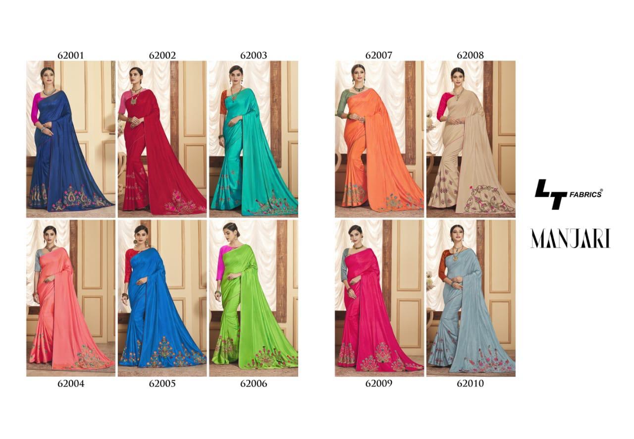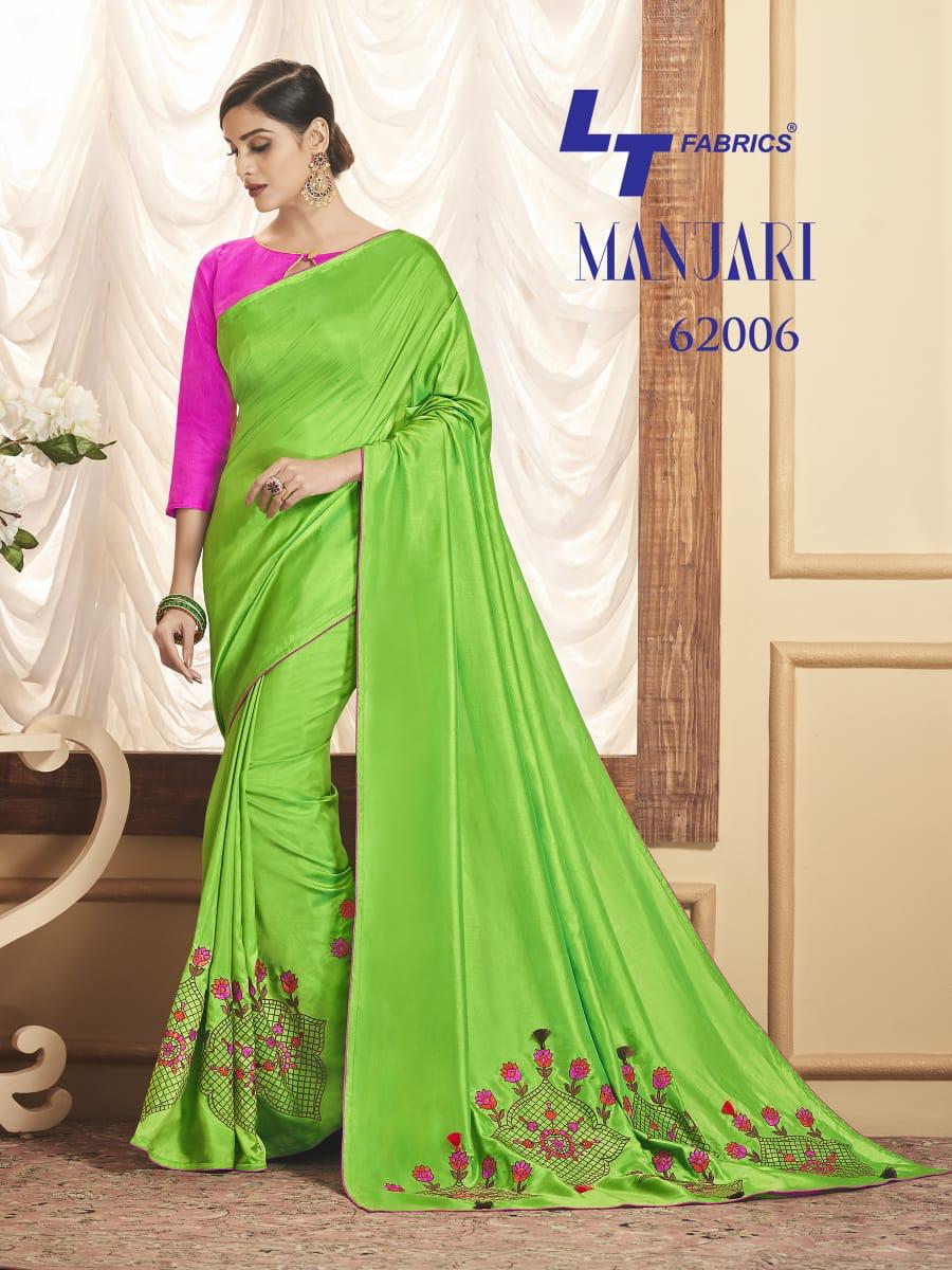 Buy Online Manjari By Lt Fabrics 62001 Series Fancy Sana Silk Resham Work Saree Collection Wholesaler Surat 10 Pcs of Full Catalogue at Wholesale Price. Looking for Manjari By Lt Fabrics 62001 Series Fancy Sana Silk Resham Work Saree Collection Wholesaler Surat Full Catalouge at Best Price? Buy Now Manjari By Lt Fabrics 62001 Series Fancy Sana Silk Resham Work Saree Collection Wholesaler Surat at Wholesale Rate of Rs 12950 with Total 10 Pcs from authroized dealer and supplier of LT FABRICS Brand. Cost of Each piece is just only Rs 1295 which is very low and affordable price to resale the product in your retail store ,This is Surat based Wholesale Supplier & Dealer of LT FABRICS Brand. Click on Brand name to Know more about LT FABRICS Brand's products.Call or Whatsapp on 9898838984 for booking or enquiry