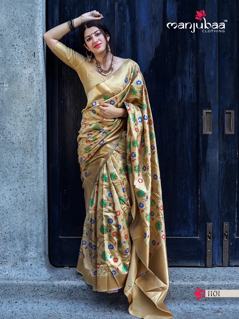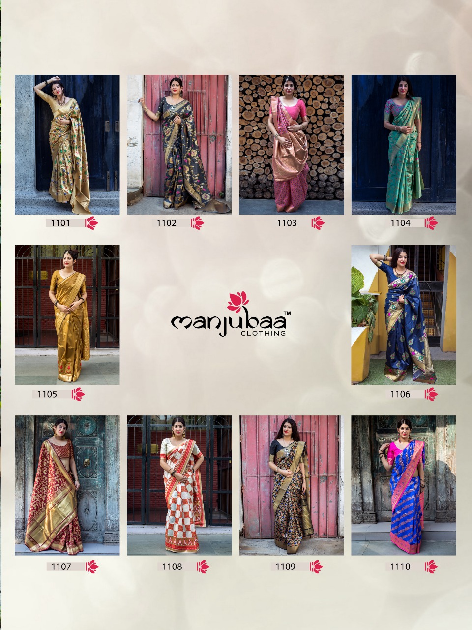 Manjubaa Clothing Lotus Vol 11 1101 Series Weaving Silk Saree Catlog Wholesale Dealer And Supplier Surat