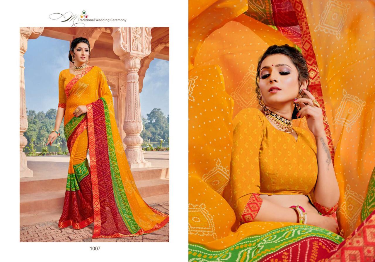 _NEW INTRODUCING_ _*MANMOHINI*_ ?????? ( MANMOHAK ) _Brand:- *MANSAROVER FASHION*_ _Rate:- *290/-*_ _Fabric:- *SEMI GEORGETTE BANDHANI PRINT* *WITH EXCLUSIVE BANARASI BODER* _Total Designs:- *08*_ _*WITH BLOUSE*_ Set to set . GST 5 Percent Extra . Delivery from today |