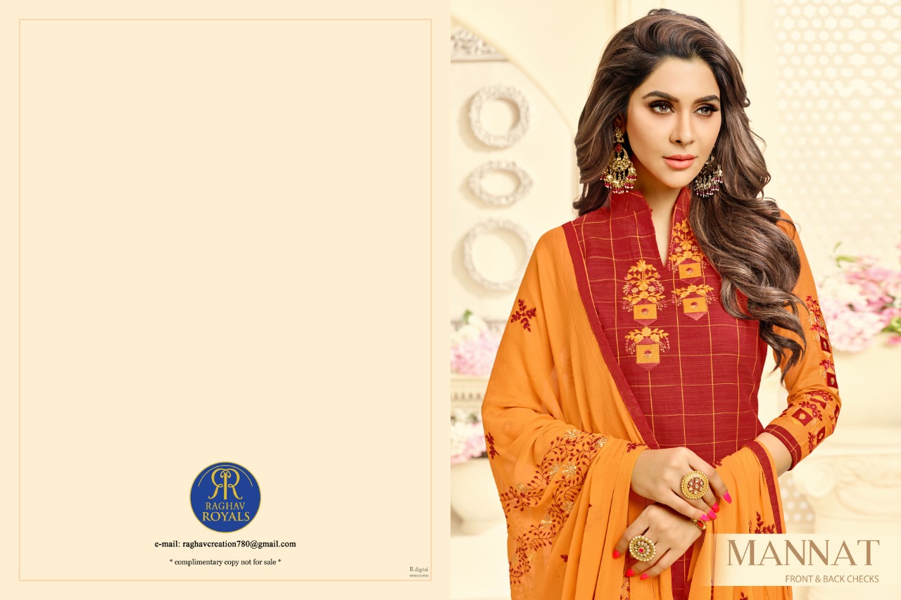 Mannat By Raghav Creation Silk Checks Fancy Work Suits Wholesale Supplier Surat