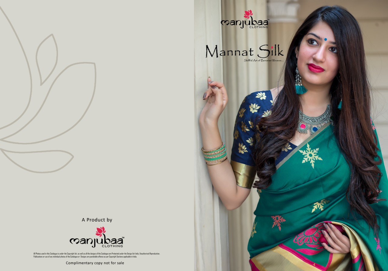 Brand - *Manjubaa* CATLOGUE - *Mannat Silk* Single 1895+5% Set Rate -1795+5% pp Fabric Details -. *Banarasi Weaving Silk* 10 pcs set Book fast Full set ready Single also *?We always trust in quality?* Ready stock |
