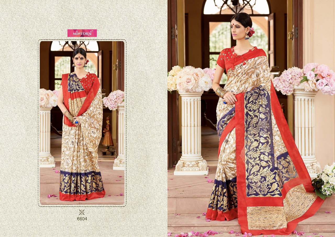 Buy Online Manorama With Exclusive Foil By Varsiddhi Mintorsi Designer Sarees Wholesale Supplier And Dealer Surat 16 Pcs of Full Catalogue at Wholesale Price. Looking for Manorama With Exclusive Foil By Varsiddhi Mintorsi Designer Sarees Wholesale Supplier And Dealer Surat Full Catalouge at Best Price? Buy Now Manorama With Exclusive Foil By Varsiddhi Mintorsi Designer Sarees Wholesale Supplier And Dealer Surat at Wholesale Rate of Rs 9200 with Total 16 Pcs from authroized dealer and supplier of VARSIDDHI SAREE Brand. Cost of Each piece is just only Rs 575 which is very low and affordable price to resale the product in your retail store ,This is Surat based Wholesale Supplier & Dealer of VARSIDDHI SAREE Brand. Click on Brand name to Know more about VARSIDDHI SAREE Brand's products.Call or Whatsapp on 9898838984 for booking or enquiry