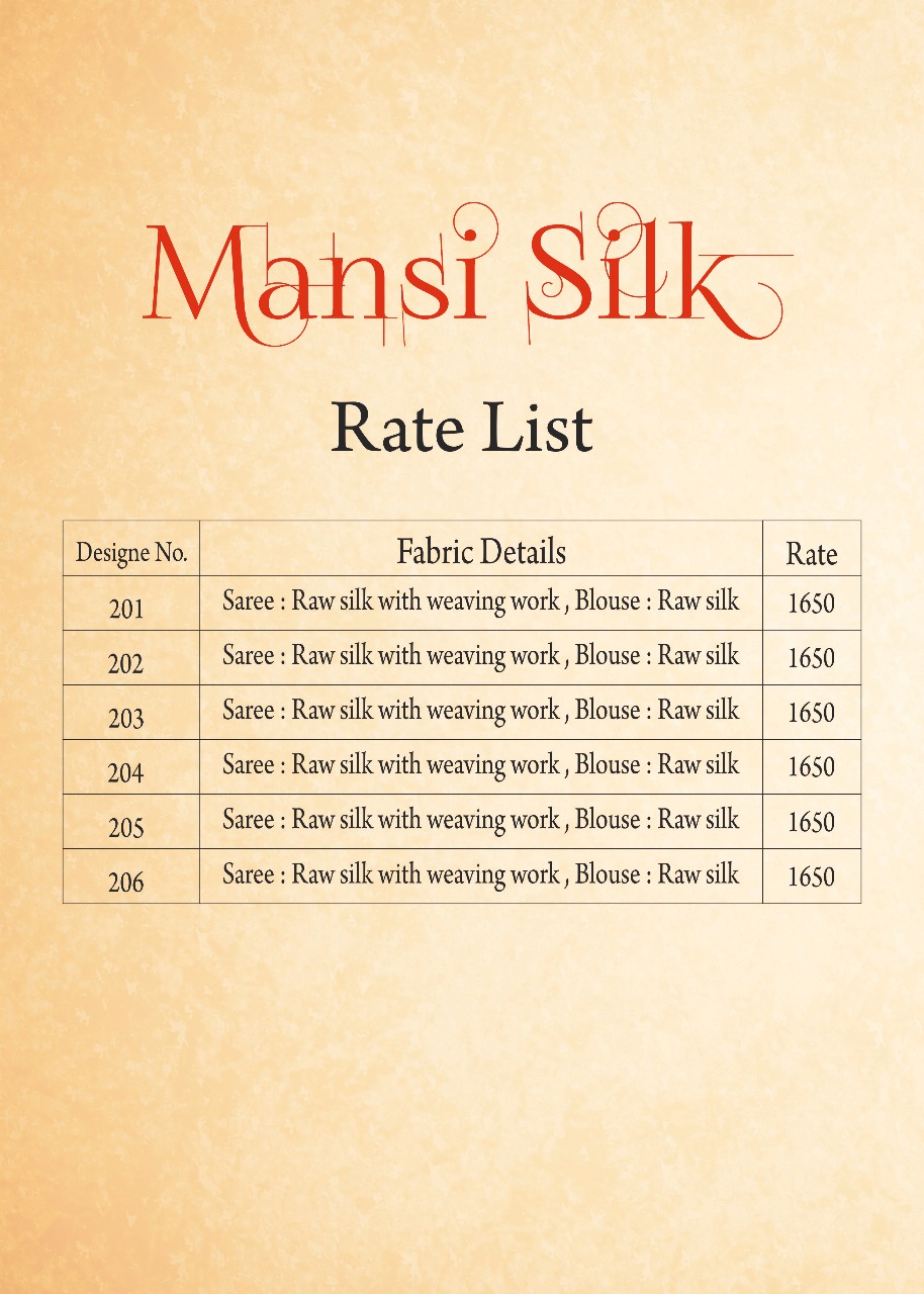 Brand - Apple . Type - saree. Catlog name - MANSI SILK . Total 6 Pcs in one set . Set to set . GST 5 Percent Extra. Delivery date -07-07-18 order and inquiry +919898838984 |